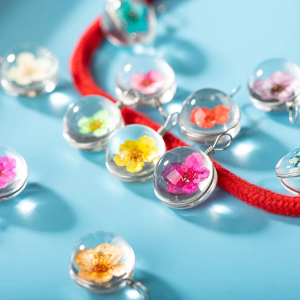 Ключевые слова: высушенный цветок в стеклянном бусине, натуральный высушенный цветок со стеклянным бусином, сделанный вручную цветок из стеклянного бусина, выцветший цветок в стекле, для самостоятельного изготовления сережек, браслетов, колье, колье, ювелирных изделий из бисера