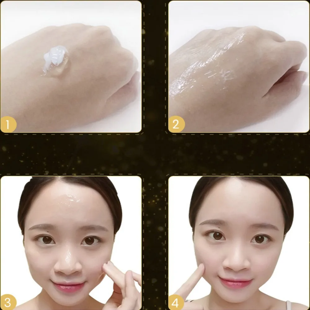 Основные ингредиенты: золото, гидролизованный жемчуг, хризантема матери и экстракт центеллы азиатской.