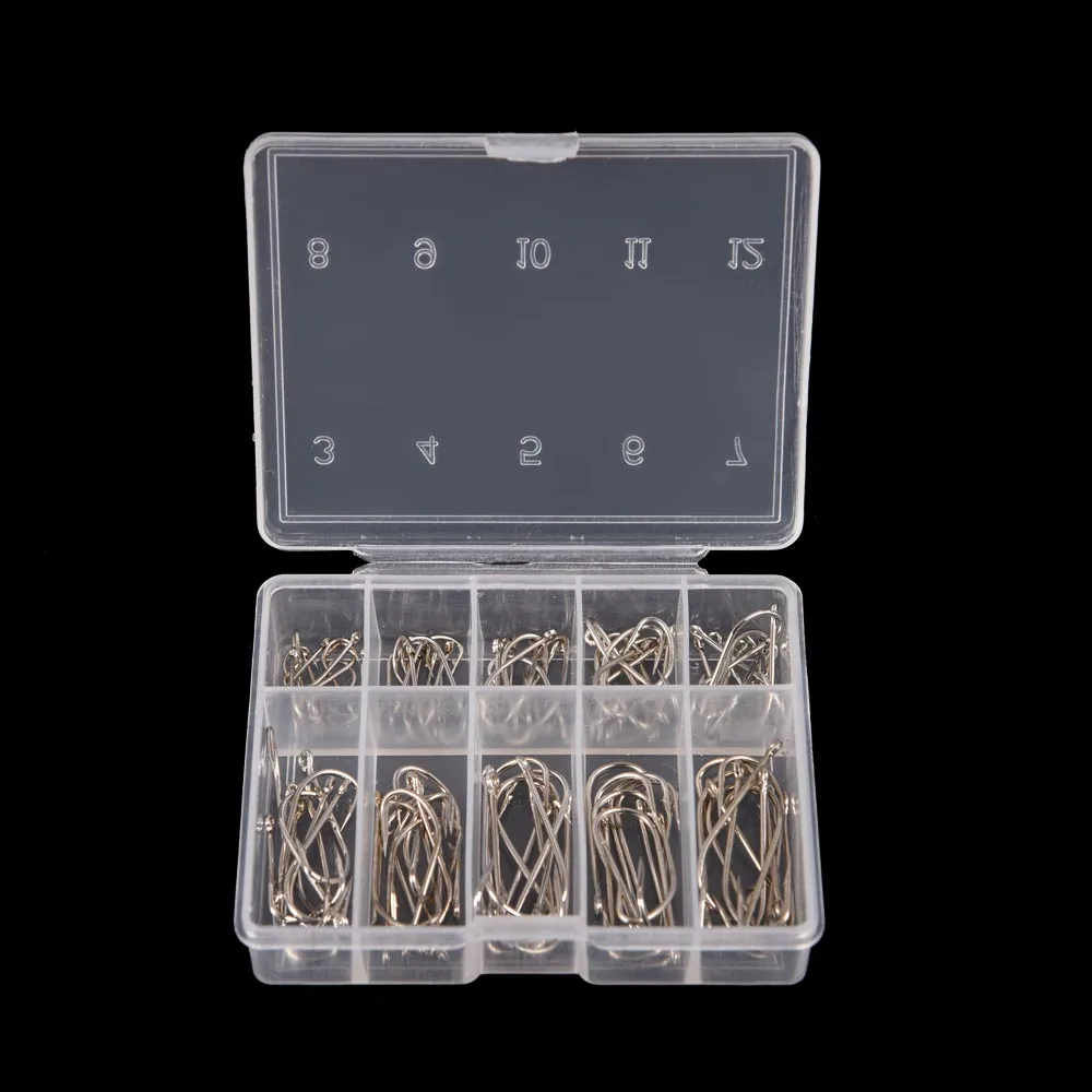 Включает 100 шт. рыболовных крючков разного размера от 3 # до 12 #.
