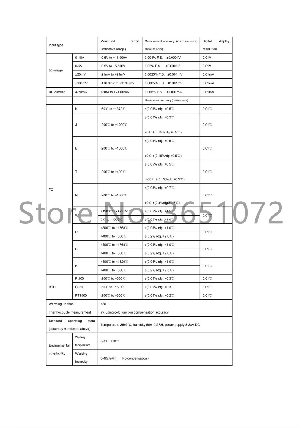Входные сигналы включают постоянный ток, напряжение постоянного тока, RTD, термопару и датчик удаленного давления. Они выбираются кнопкой, сенсорным экраном или интерфейсом USB. Универсальный вход между каналами, точность ввода каждого сигнала соответствует следующей таблице: