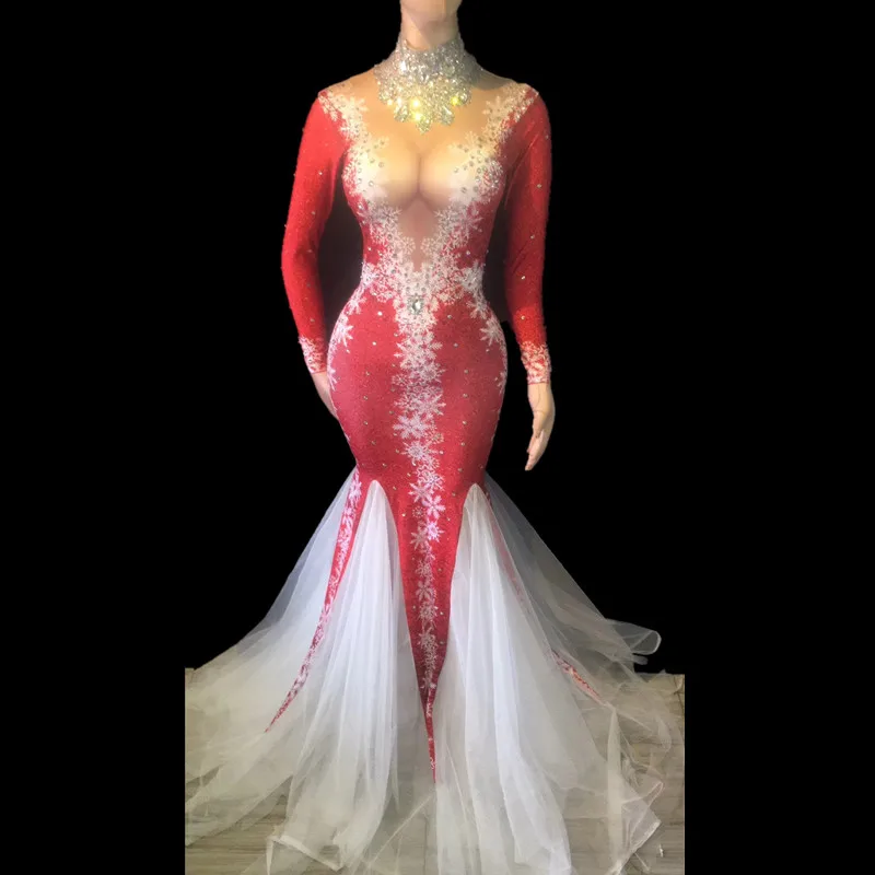 Christia Bella торжества выпускного вечера женское ажурное платье для рождественской вечеринки облегающая Стразы платье с русалочкой певица сценические костюмы