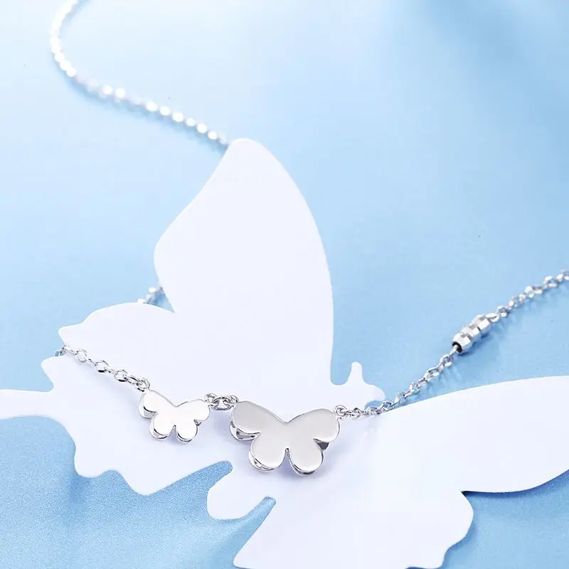 Элегантный Платиновый белый настоящий однотонный золотой комплект с бабочкой ожерелье с подвеской на цепочке для женщин и девушек Изящные ювелирные украшения для офиса