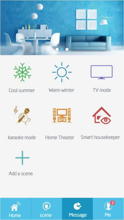 Простая домашняя страница с четкими значками.Устройства могут быть скомпонованы по комнате.Легко для использования маленькими детьми и пожилыми людьми