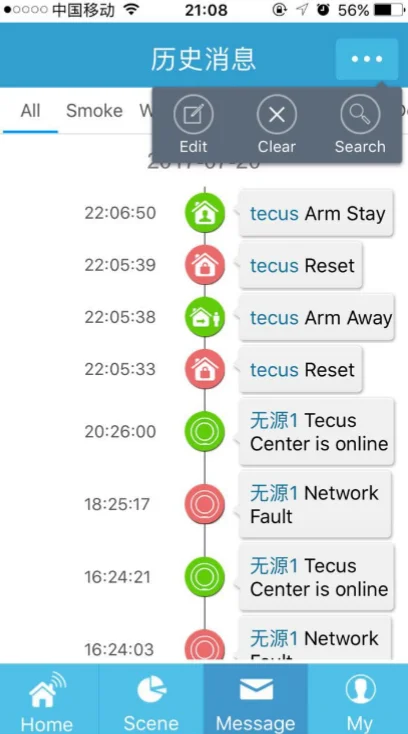 Поддержка проверки истории всех устройств и поиска истории. Любой триггер датчика, дверного замка и фальсификации устройства мгновенно отправит уведомление на ваш телефон.