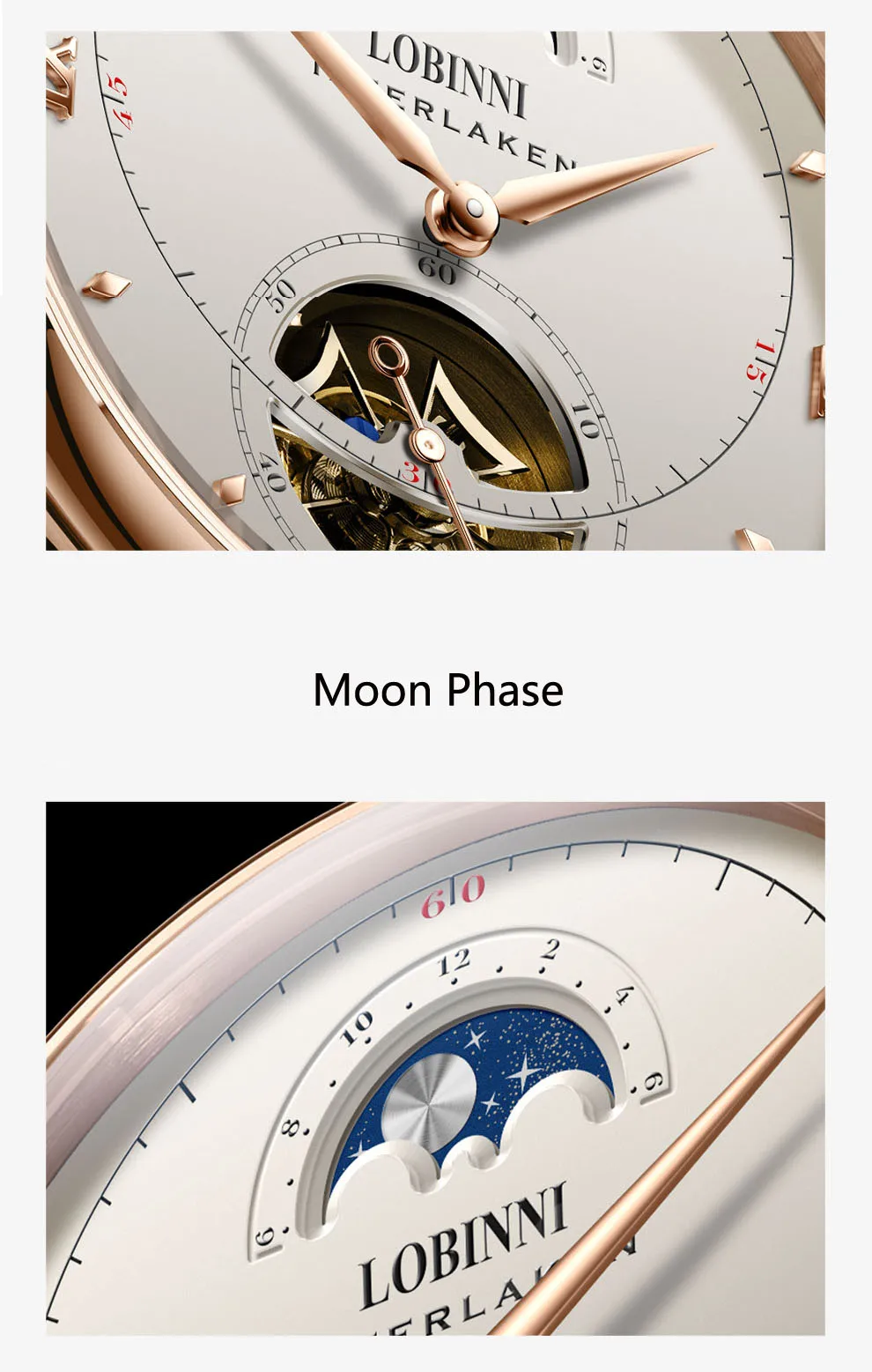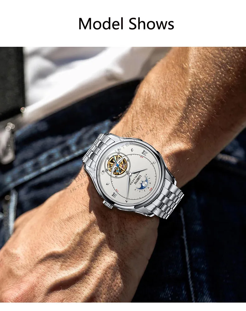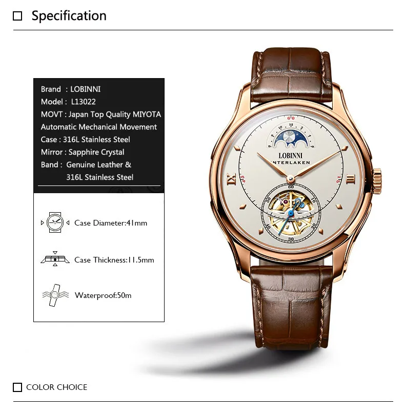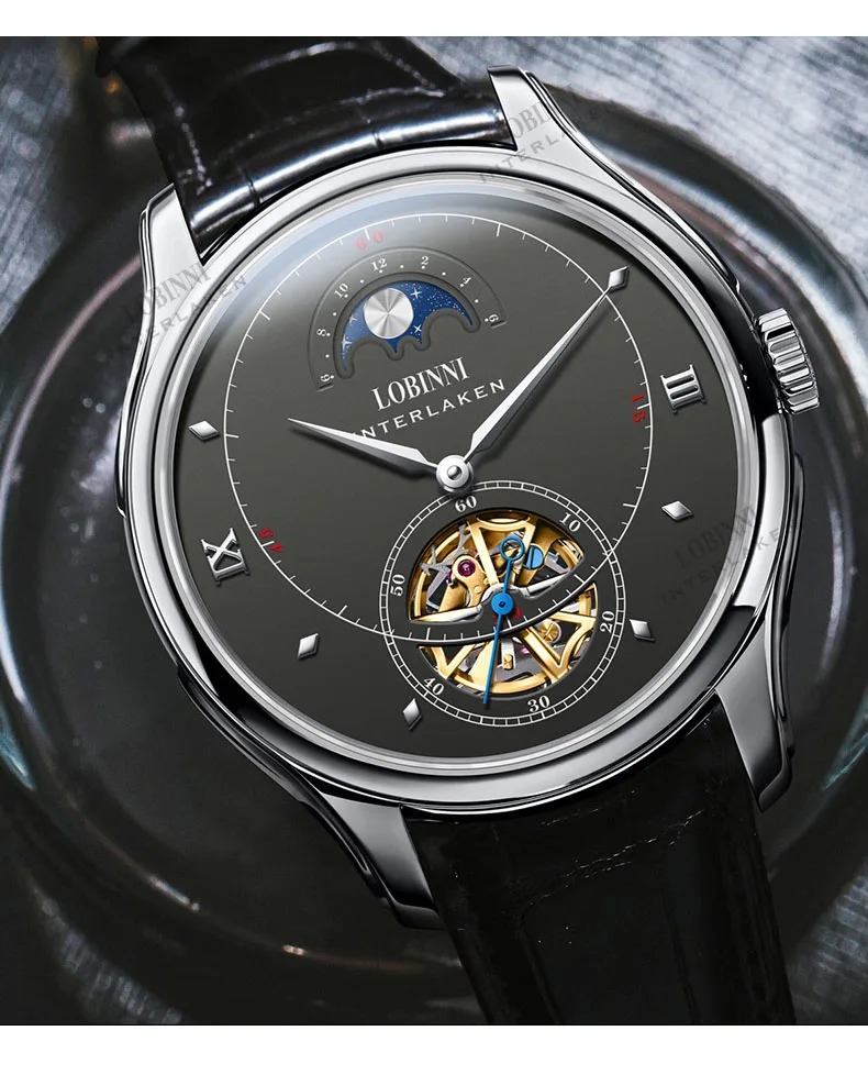 Посылка включает часы + LOBINNI box + Бесплатный товар (подарок) Характеристика: водонепроницаемость 50 м (подходит для плавания)/фаза Луны Высокая цена соотношение: Япония Seiko движение/Сапфировое Окно 1 год гарантии