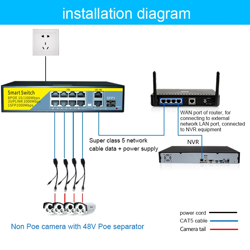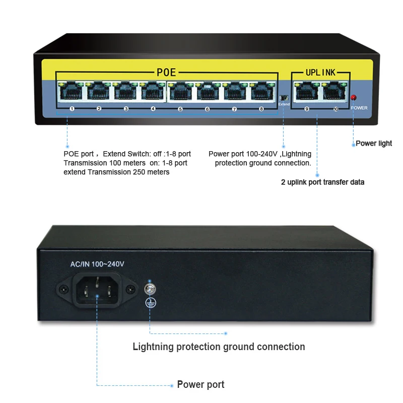 Пожалуйста, обратите внимание на следующее перед покупкой: 1: Все источники питания имеют встроенные источники питания 2: порты 100 Мбит/с для всех выходных портов POE 3: порт UP-LINK имеет 100 Мбит/с и 1000 Мбит/с (не покупайте неправильно)