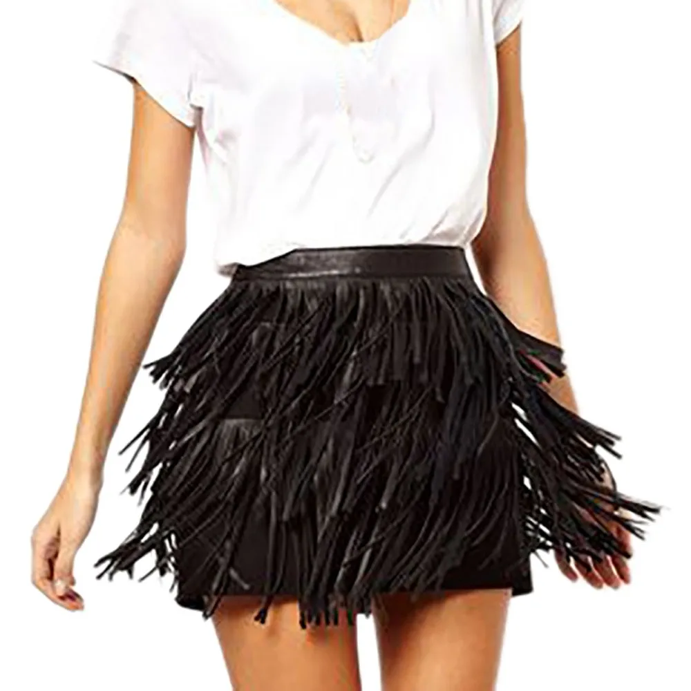 Модная женская Праздничная Летняя мини-юбка на молнии с кисточками и высокой талией для сцены и вечеринок