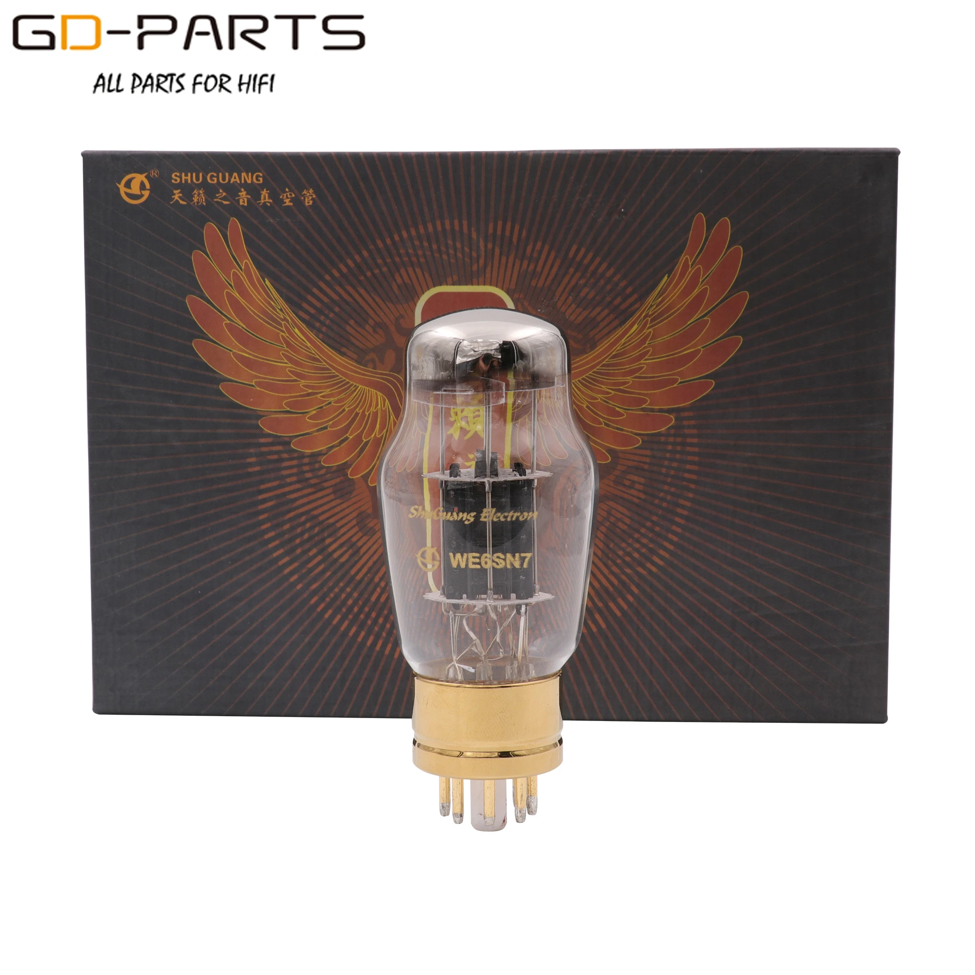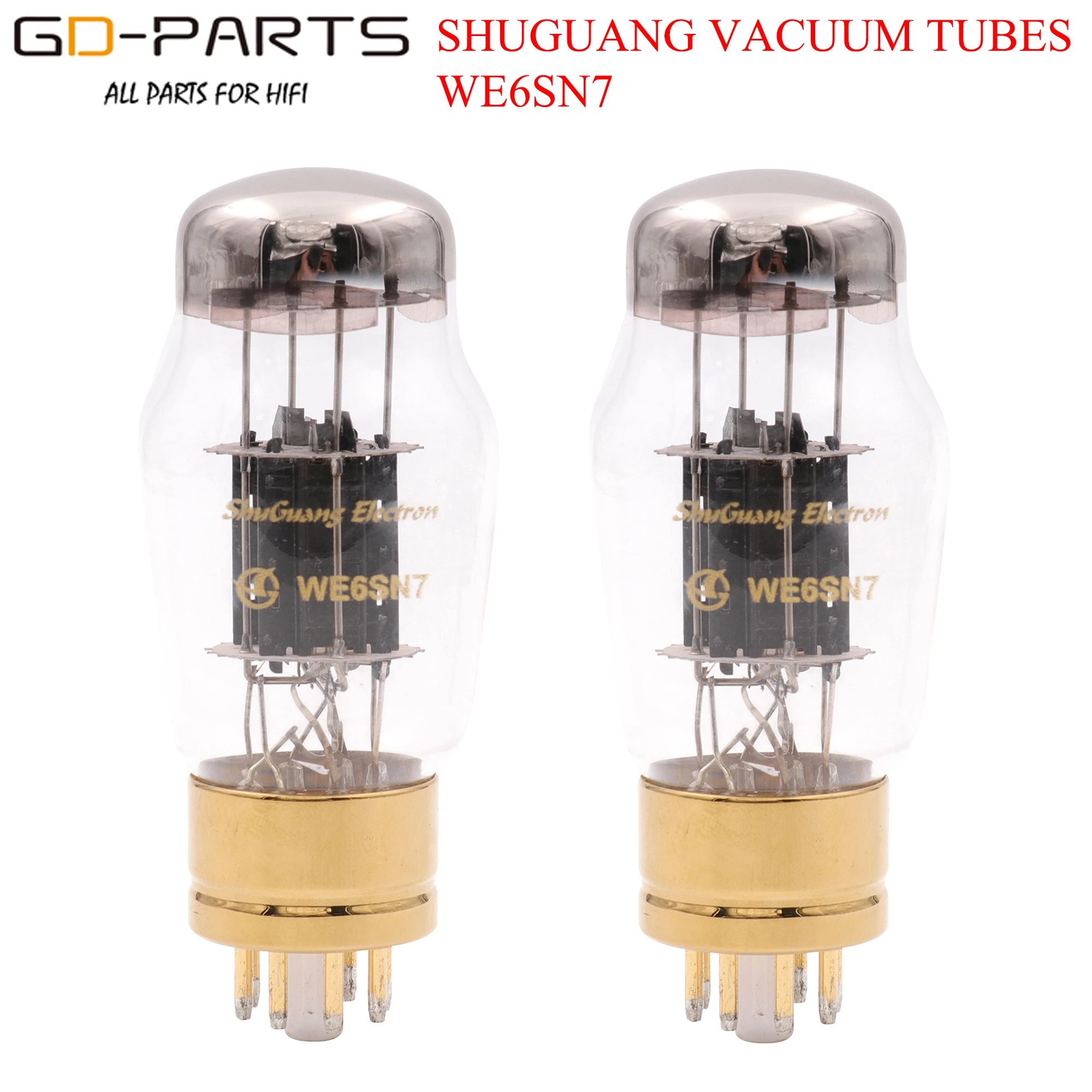 Новая Оригинальная вакуумная трубка Shuguang Номер модели: WE6SN7, коллекционное издание Замена/обновление 6SN7, 6H8C, ECC35, 6N8P трубы непосредственно Позолоченное основание трубки и булавки Количество: 2 шт. (1 пара)