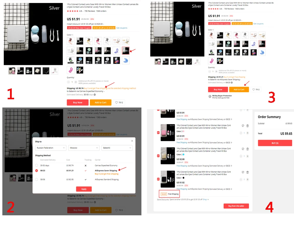 1. Выберите продукт, который вы хотите 2. Выберите способ доставки бесплатно 3. Добавить в корзину 4. Присоединяйтесь к 5 продуктам в последовательности 5. Выберите магазин во время совершения покупки, там будет приглашение на бесплатную почту, а затем оплатить