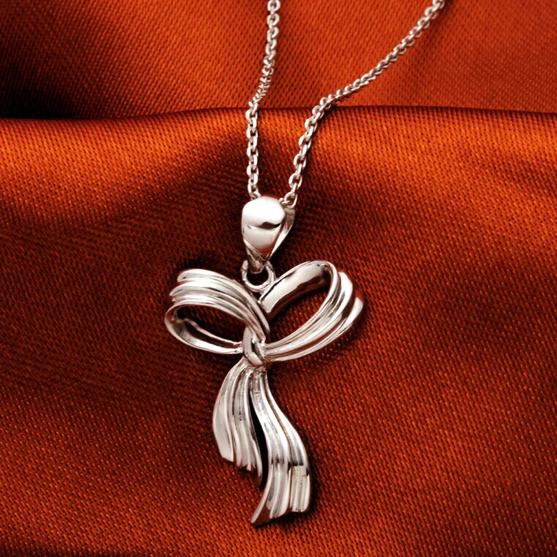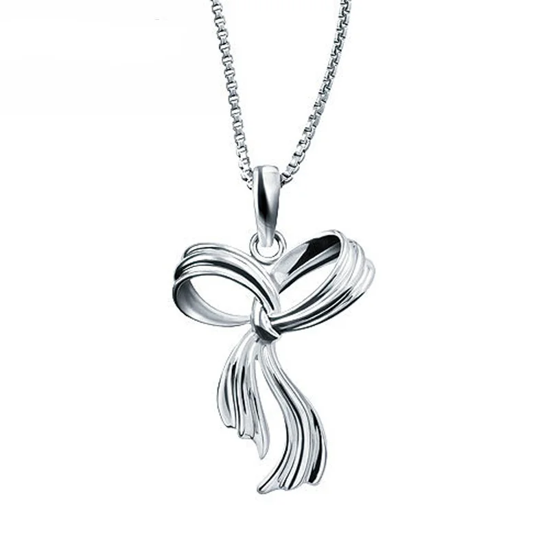 Элегантный Платиновый белый настоящий однотонный золотой кулон PT950 с бантом, Очаровательное ожерелье для женщин, девушек, девушек, женщин, изящные офисные повседневные ювелирные изделия, подарок