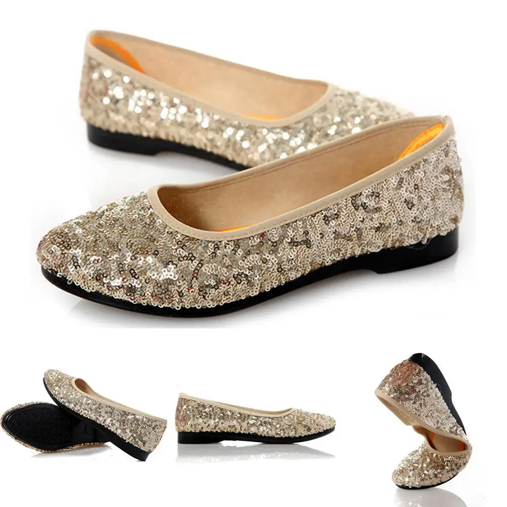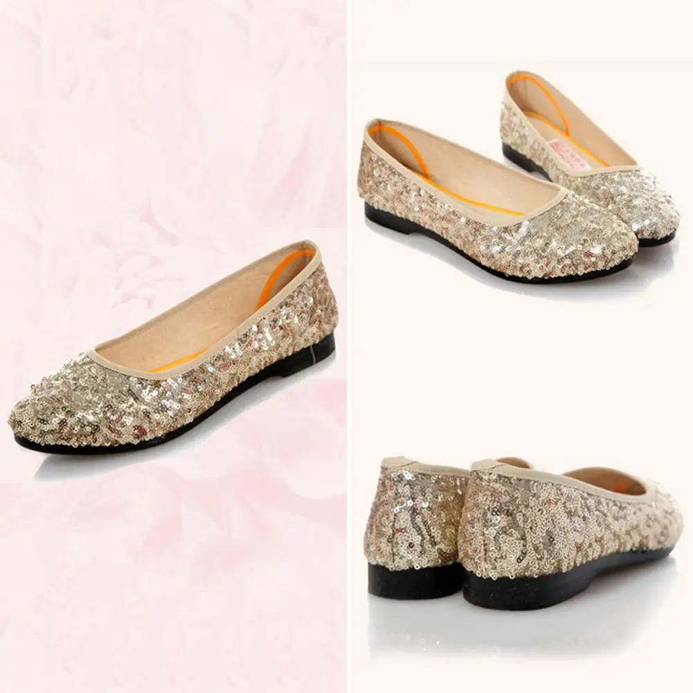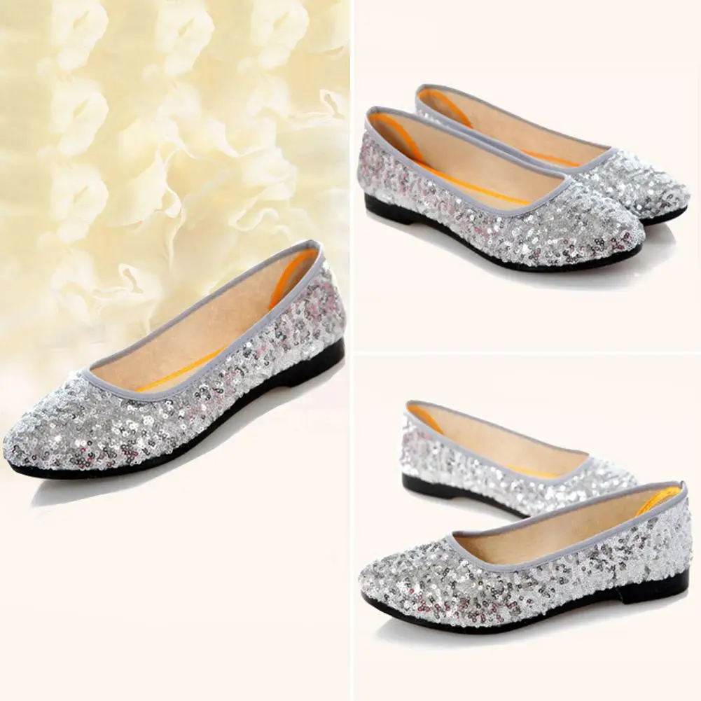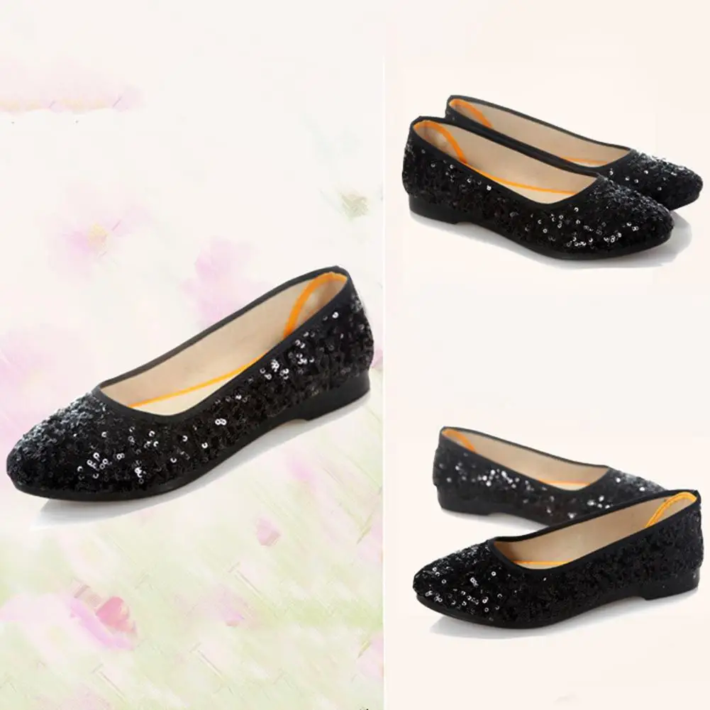 Женская обувь из ткани с блестками; Повседневная Удобная обувь на плоской подошве с острым носком без застежки