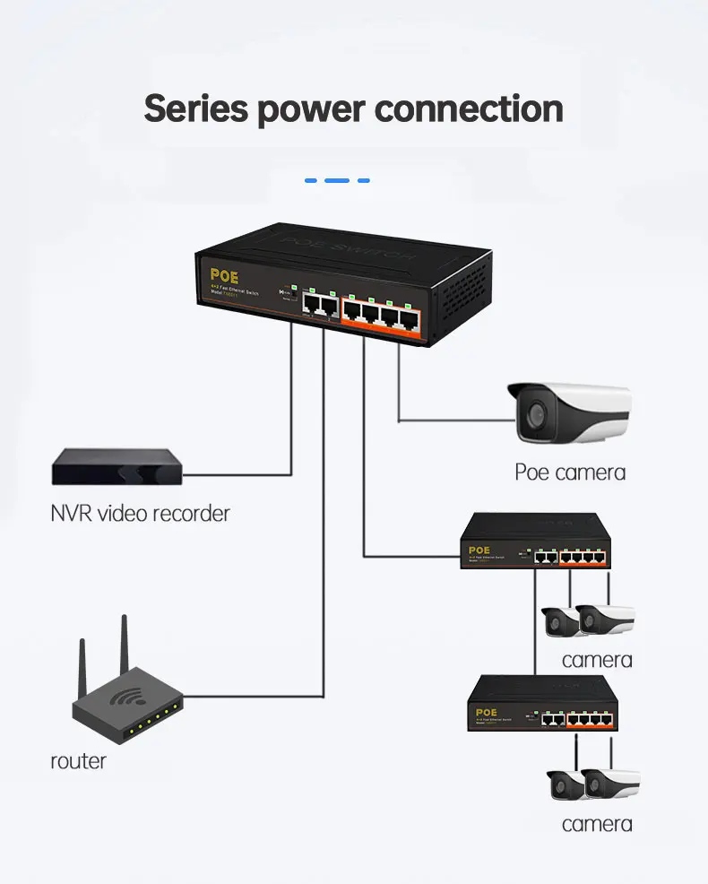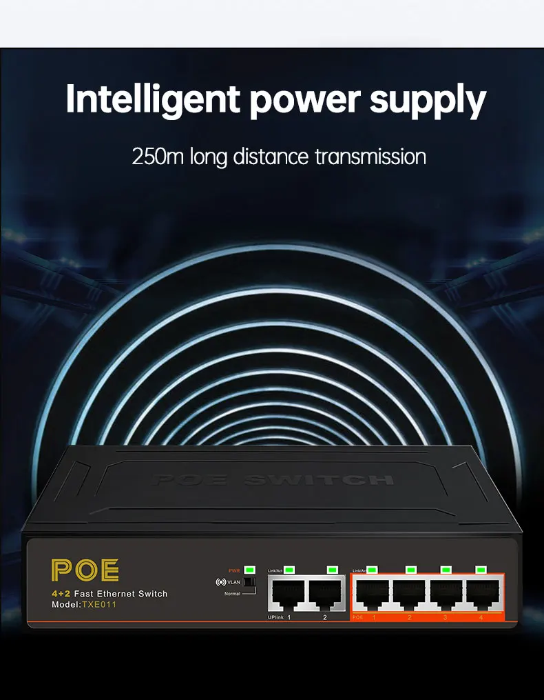 Продукт: 100 Мбит/с 4 + 2 коммутатора POE Fast Ethernet
