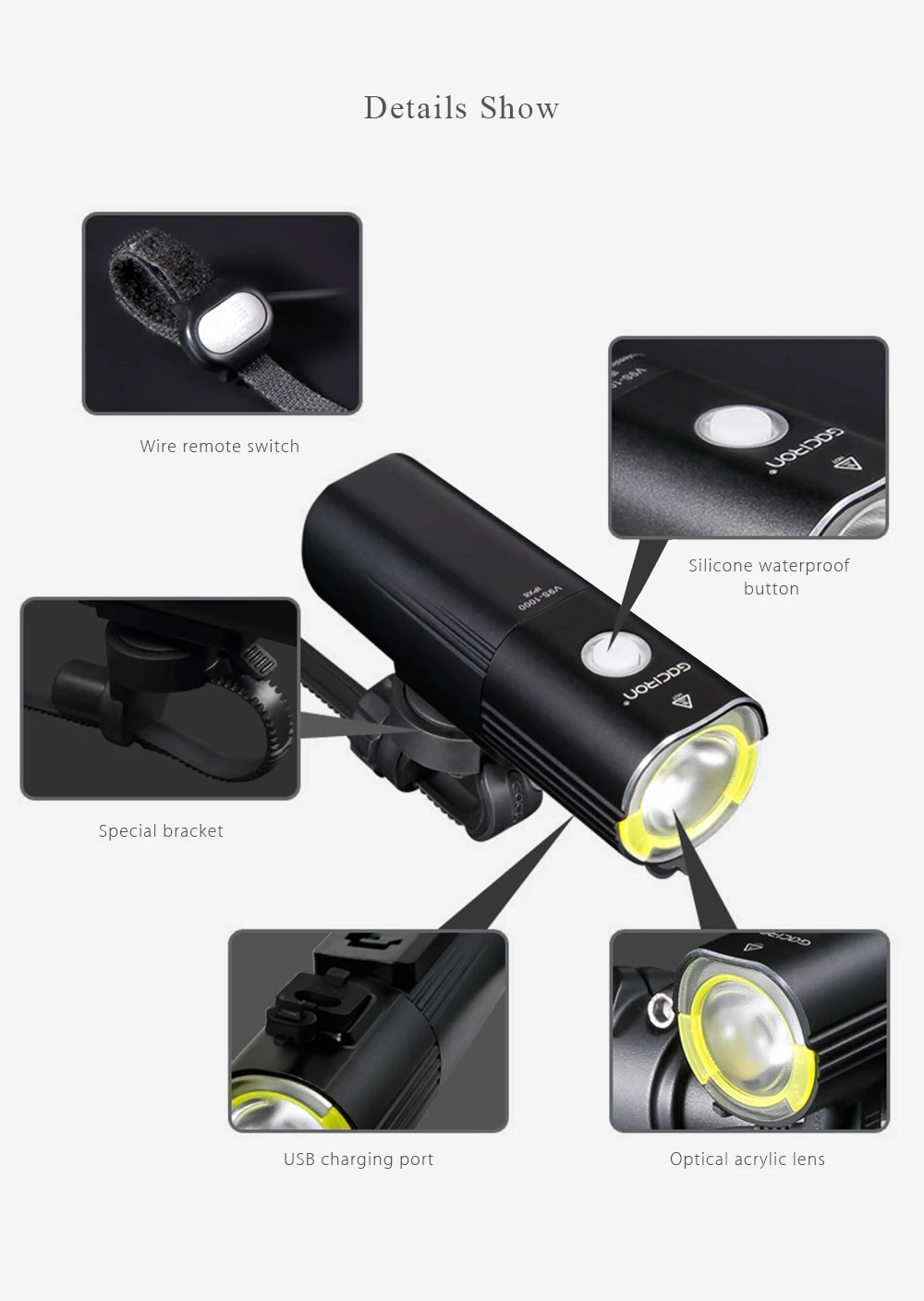 -1000 люменов и супер яркий светильник, 200 м светильник на расстоянии и желтый боковой светильник делает вас безопаснее, когда вы катаетесь на велосипеде ночью