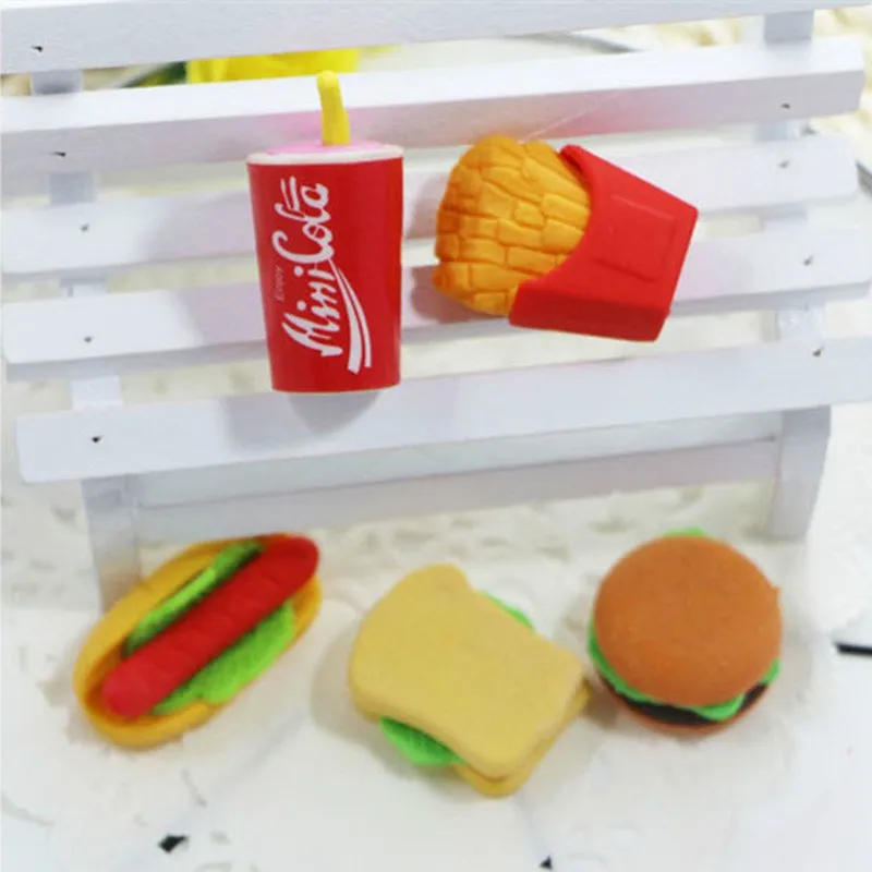 Милый ластик Kawaii, мини-гамбургер, хот-дог, Коля, картофель фри, торт, школьные ластики, офисные канцелярские товары для исправлений, товары для детского подарка Материал: Резина Вес: 10 г Размер: как показано Посылка включает в себя: 1 ластик