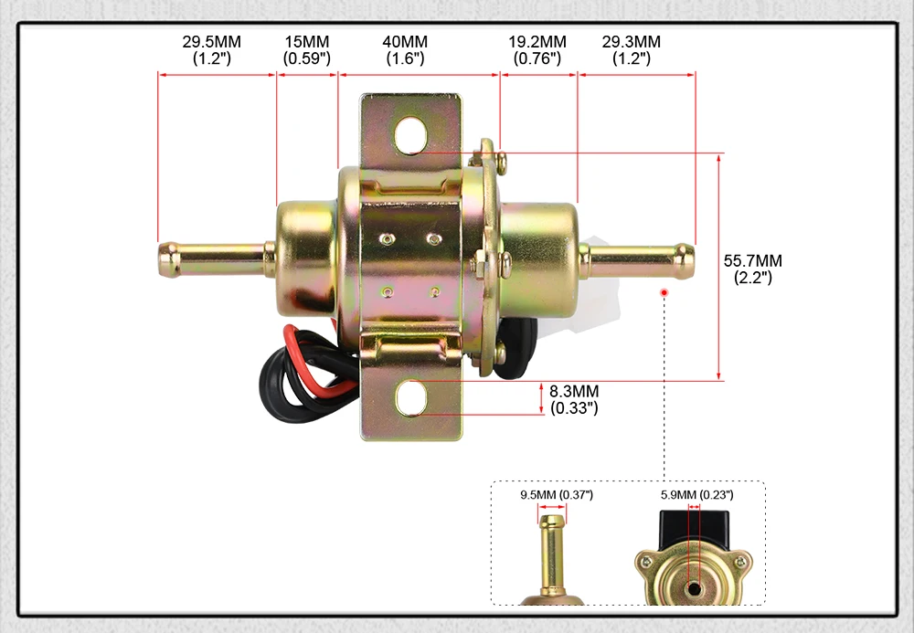 100% гарантия качества, более отзывчивая, менее дорогая, простая в установке.Сделайте так, чтобы двигатель сжигал топливо более эффективно и чисто без выбросов.Превосходный механизм внешнего кожуха крыльчатки для максимального увеличения потока топлива.Постоянный расход топлива при низком диапазоне электрического тока.Напряжение: 12 В.Сила тока: 0,35 А.Давление: 5 фунтов на квадратный дюйм.Расход: 80-120 л / ч.Размеры и материал: