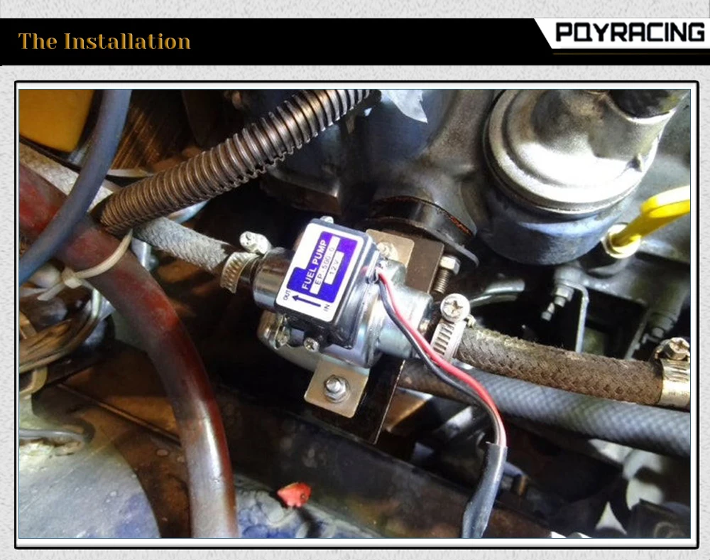 1. Отсоедините аккумулятор. демонтировать механический топливный насос (решать вам).2. Выберите область рядом с существующими топливными магистралями, рядом с топливным баком, установите насос.3. Подсоедините топливопровод от бака к топливному фильтру, а фильтр - к впускному отверстию насоса.4. Подсоедините напорный трубопровод карбюратора к выпускному отверстию насоса.5. Подключите шнур питания от топливного насоса к клемме (P) масляного переключателя.6. Подключите провод к клемме (I) масляного выключателя к открытому 12-вольтовому источнику питания, управляемому выключателем зажигания.7. Подключите провод от нормально замкнутой системы запуска к клемме (S) масляного выключателя.8. Запустите двигатель, чтобы проверить, работает ли он или течет.Примечание: