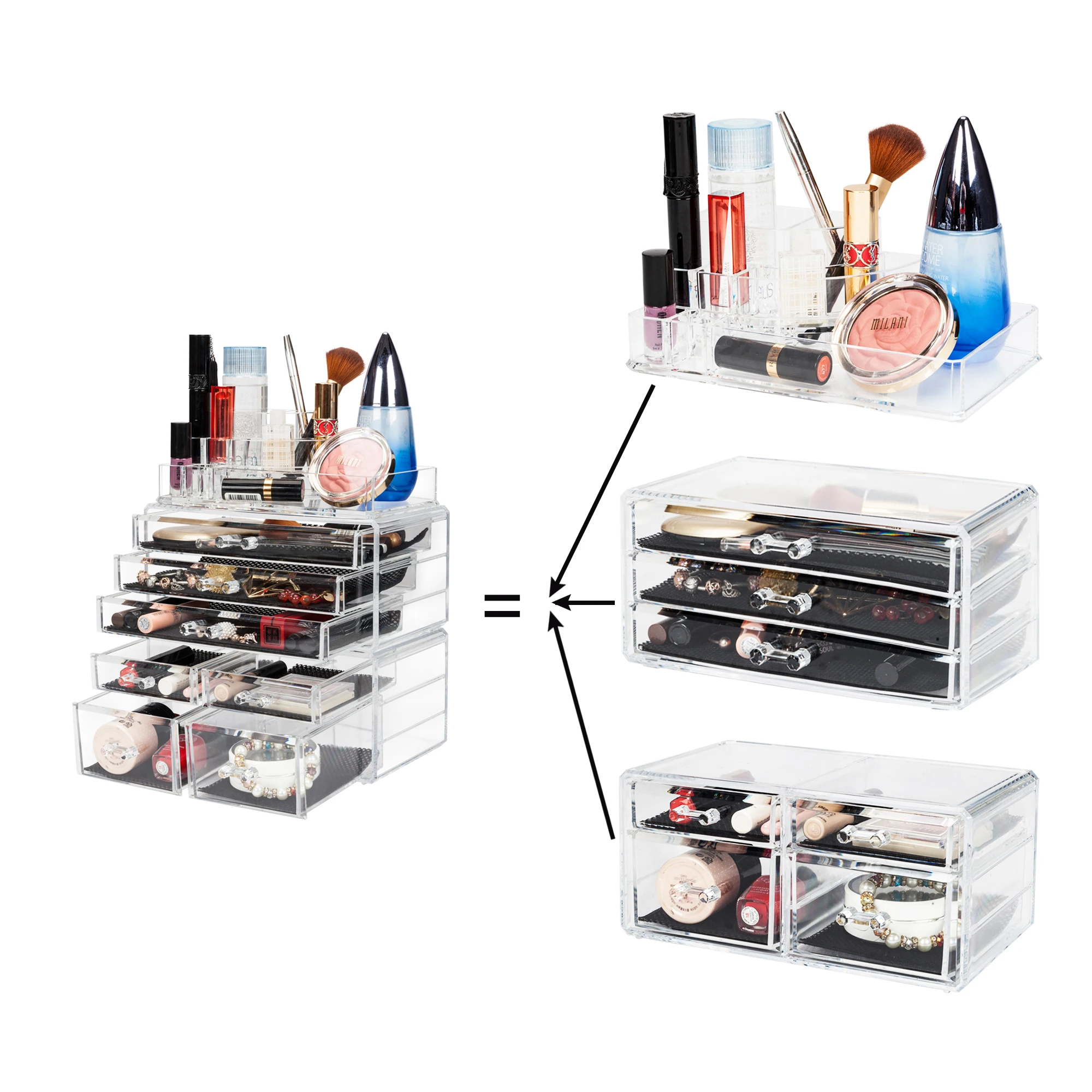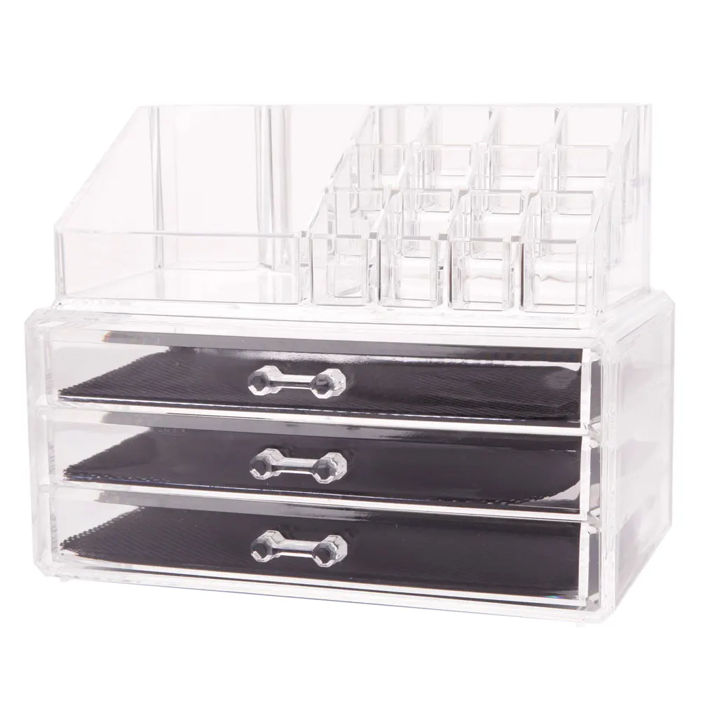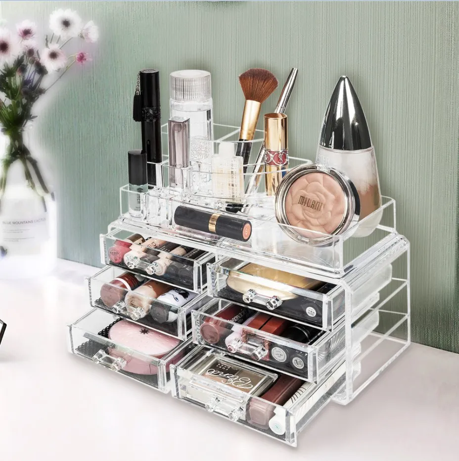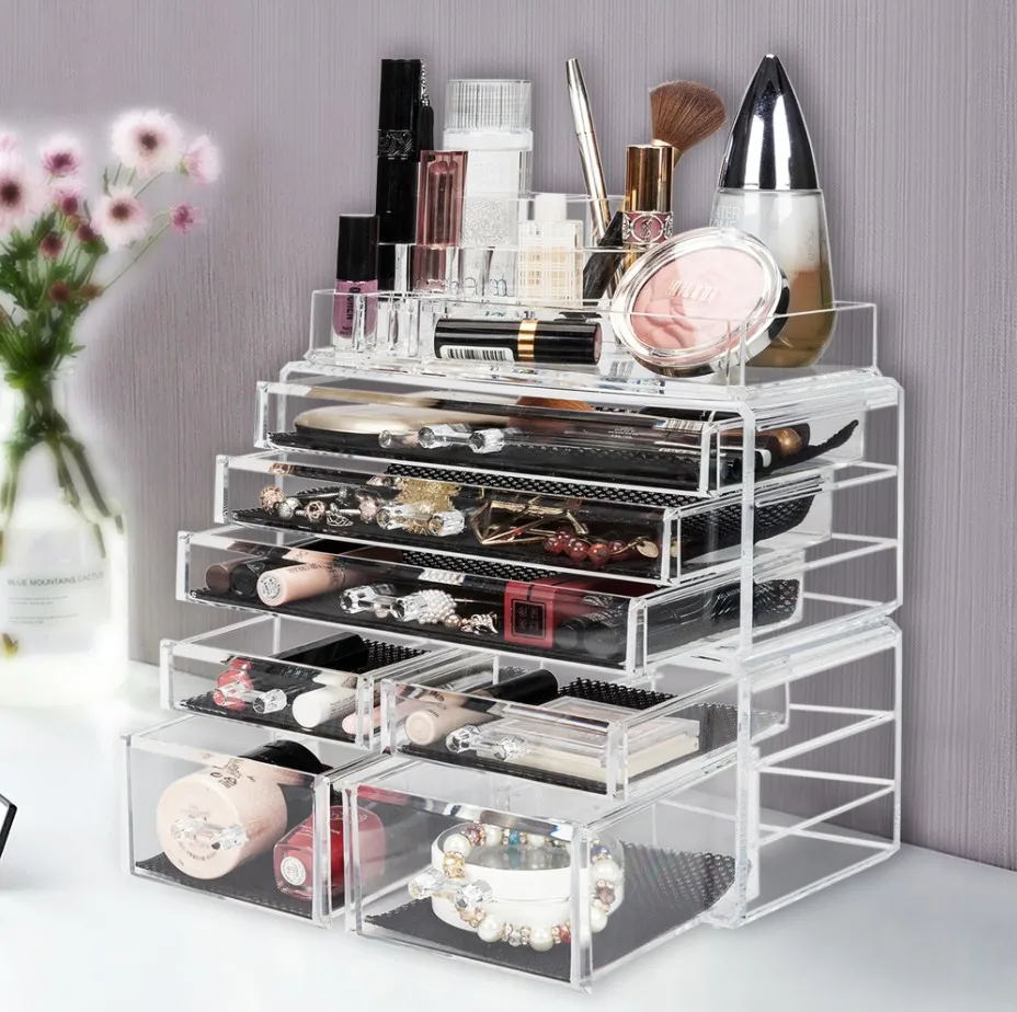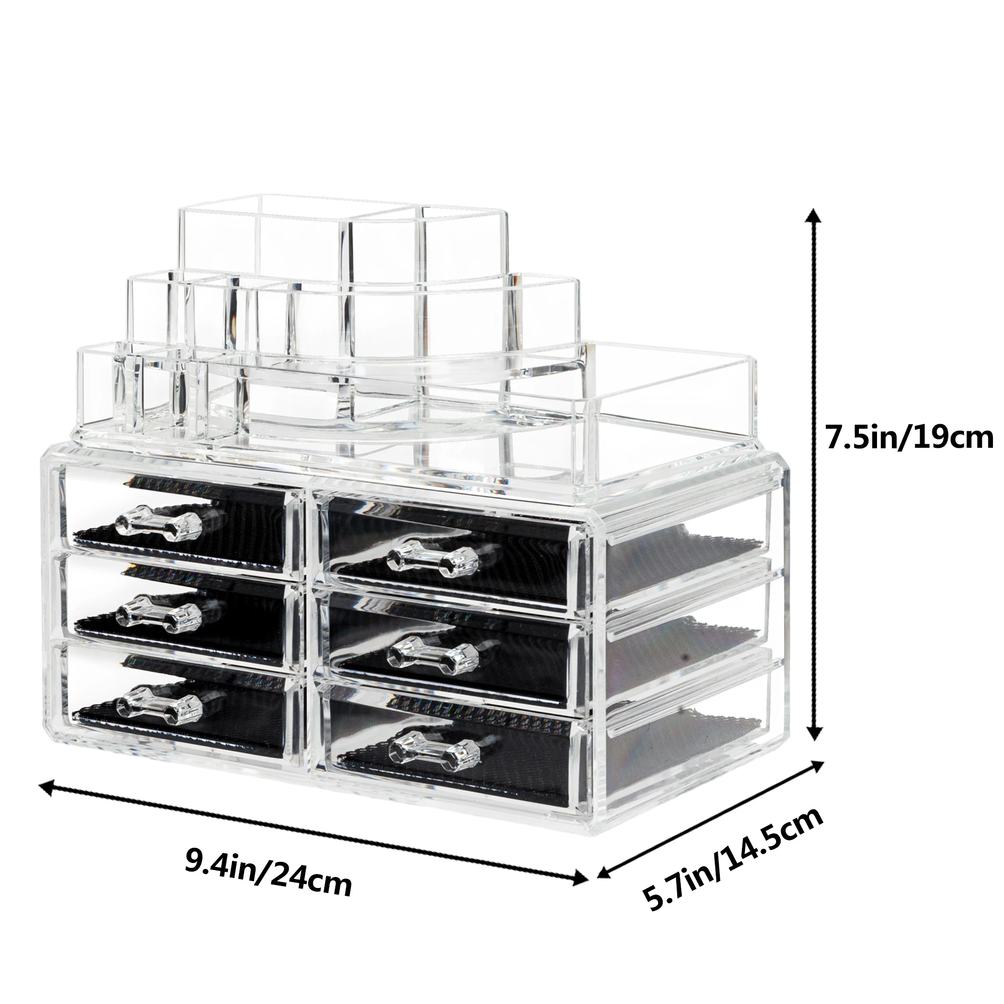 ____________________________________________ NO.12 Технические характеристики: 1. Материал: акрил 2. Цвет: прозрачный 3. С выдвижными ящиками: 6 4. Размеры: (9,45x5,71x7,48) " / (24 х 14,5x19) см Размер упаковки (Д х Ш х В): 5. Вес: 47,62 oz / 1350g