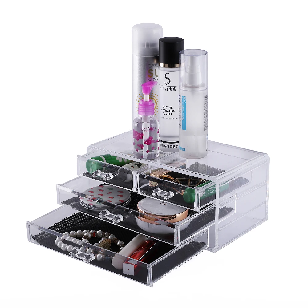 ____________________________________________ NO.9 Технические характеристики: 1. Материал: акрил 2. Цвет: Прозрачный 3. Ящика: 4 4. Размеры: (9,45x5,71x7,48) " / (24 х 14,5x19) см Размер упаковки (Д х Ш х В): 5. Вес: 46,91 oz / 1330g