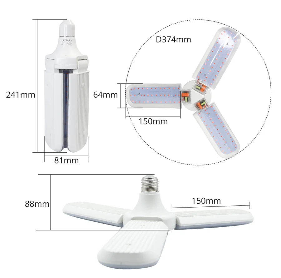 LEDIARY 100-240 В светодиодная Складная Лампа для выращивания растений, регулируемая угловая лампа для комнатных теплиц, овощей, энергосберегающая, CE 1. Материал: ПК + алюминий + электронные детали 2. Реальный Ватт: 45 Вт/55 Вт 3. Размер: как на картинке 4. Тип гнезда: E27 5. Вход: 100-240 В 6. Размеры: 9,4 × 3 дюйма/9,5 × 3,93 дюйма 7. Световой поток: 95 µmol/s/115 µmol/s 8. Эффективность: 2,35 мкмоль/Дж/2,9 мкмоль/Дж 9. Люмен: 2500lm/3500lm 10. Источник света: светодиод питания 11. Цвет корпуса: белый 12. Угол луча: 180 ° 13. Защита от попадания: IP54 14. Базовый тип: Стандартный E26 фитинг для Северной Америки, E27 фитинг для остальной части мира 15. Срок службы с содержанием потока 90%: 50000 ч Установка: 1. Отключите основную мощность перед установкой светодиодной лампы GreenPower. 2. Закрепите зеленую светодиодную лампу в стандартном фитинге E26 или E27. 3. Включите зеленую светодиодную лампу для улучшения качества, консистенции и цветения, чтобы сделать большую часть сельскохозяйственных культур и инвестиций. Внимание: 1. Подходит для стандартных открытых E27 или E26 фитингов, не для закрытых фитингов. 2. Светодиодные лампы для выращивания должны держать не менее 12 дюймов от завода для достижения наилучших результатов. 3. Не протирайте зеленую светодиодную лампу грязным полотенцем, грубыми или крупнозернистыми материалами, отбеливателем, растворителями и крупнозернистыми чистящими средствами. 4. Использование некоторых химических веществ, таких как пестициды, пестициды, фунгициды и т. Д. Может повредить зеленый свет.