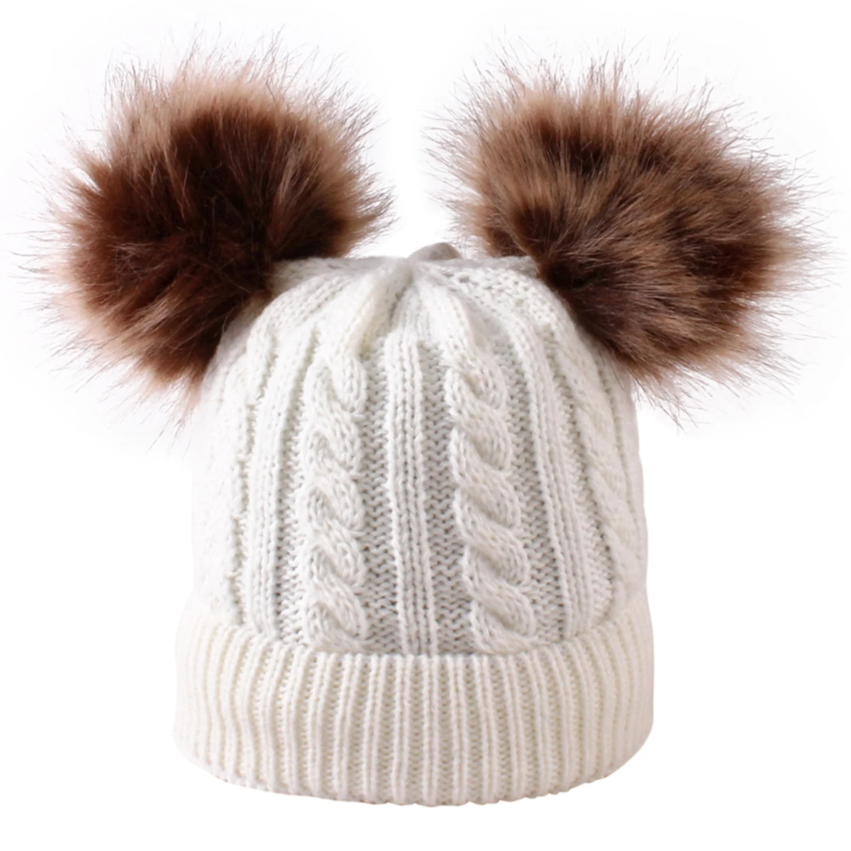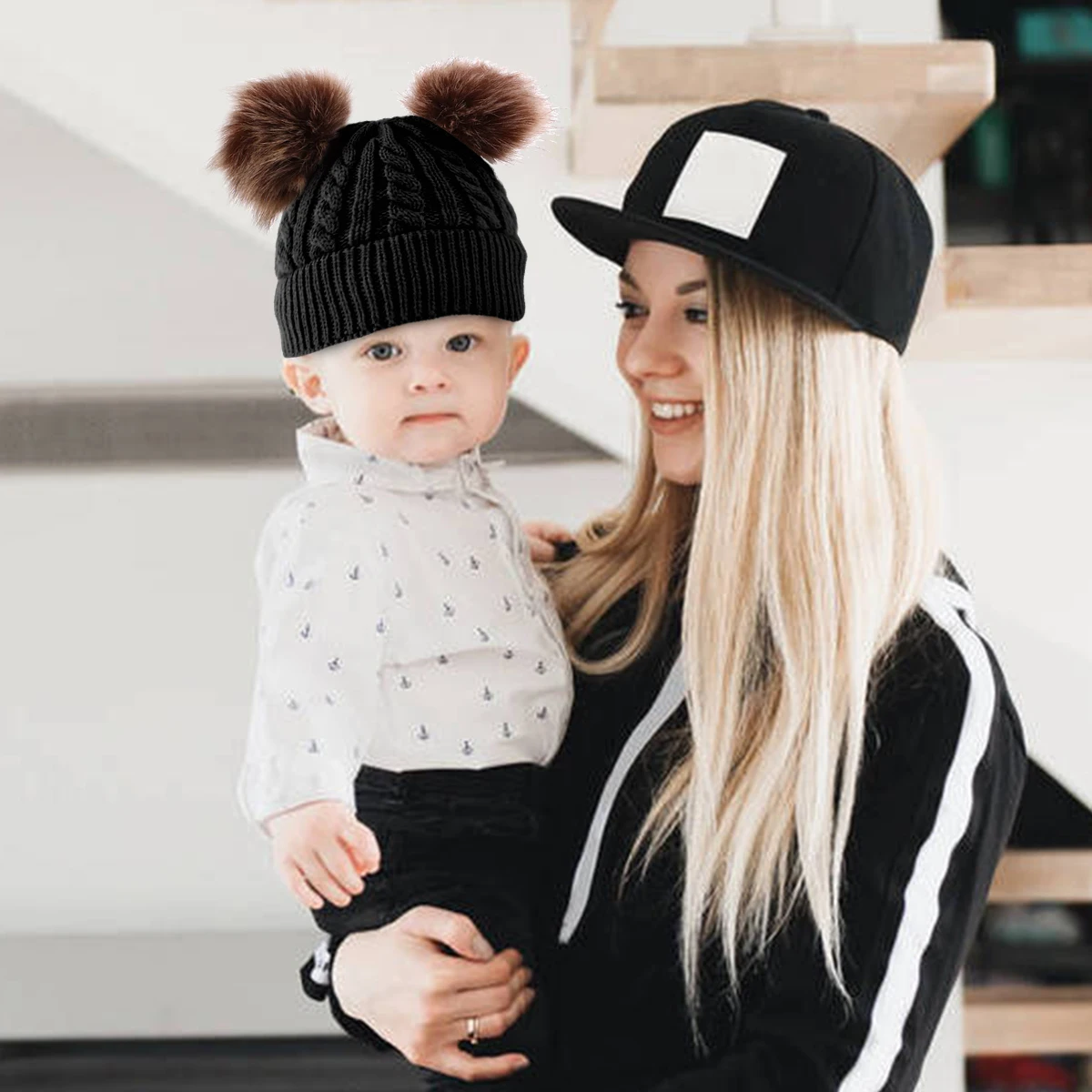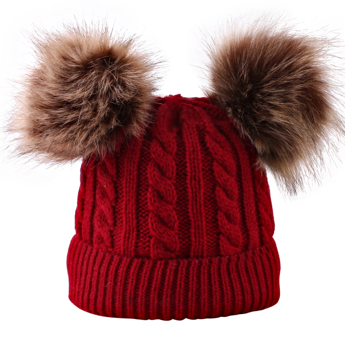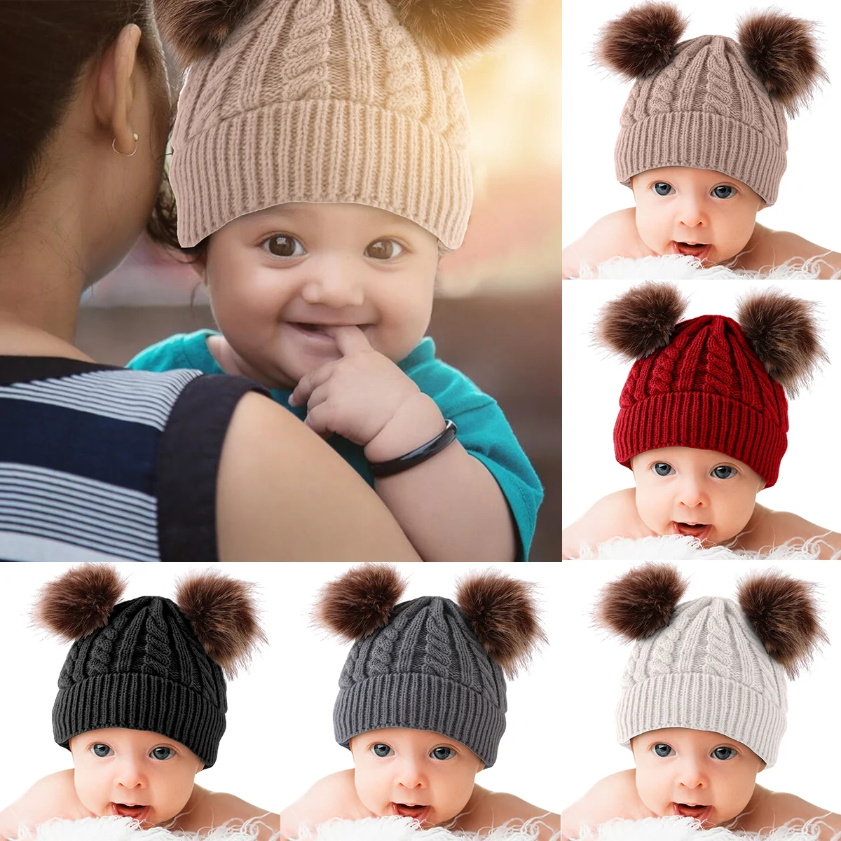 Puseky/детская шапка; Теплая Зимняя шерстяная шапка для малышей; Вязаная шапка с меховым помпоном; Шапка для маленьких мальчиков и девочек; От 0 до 3 лет; Прямая поставка