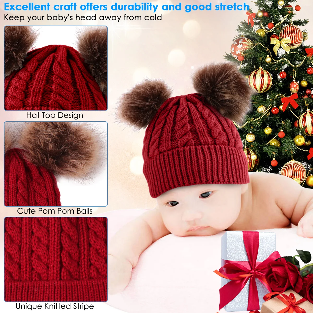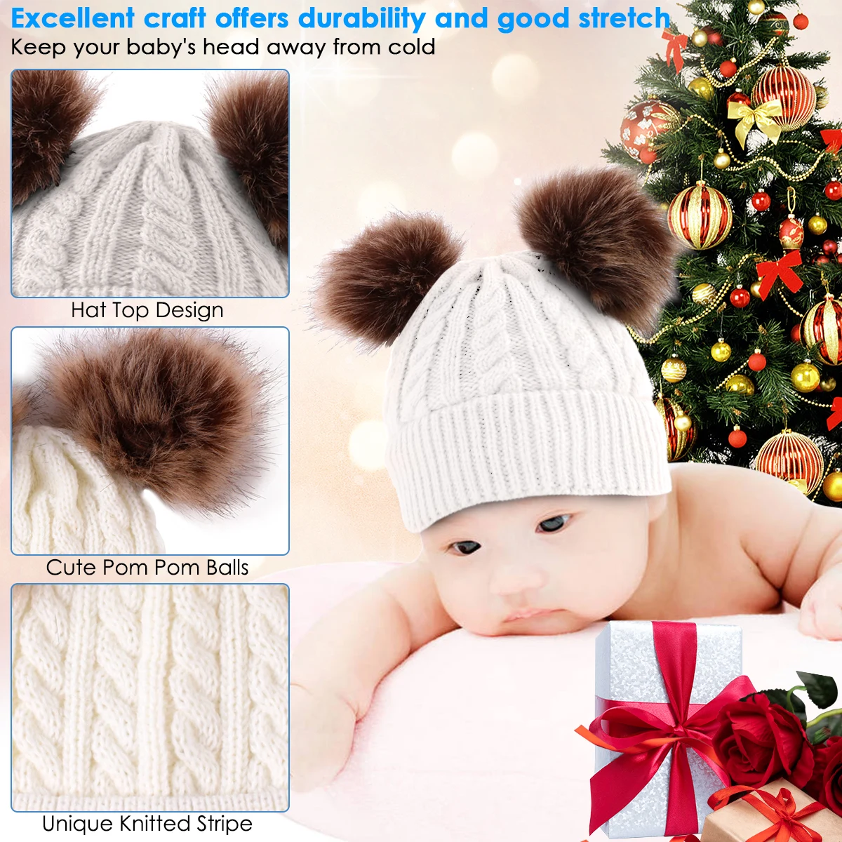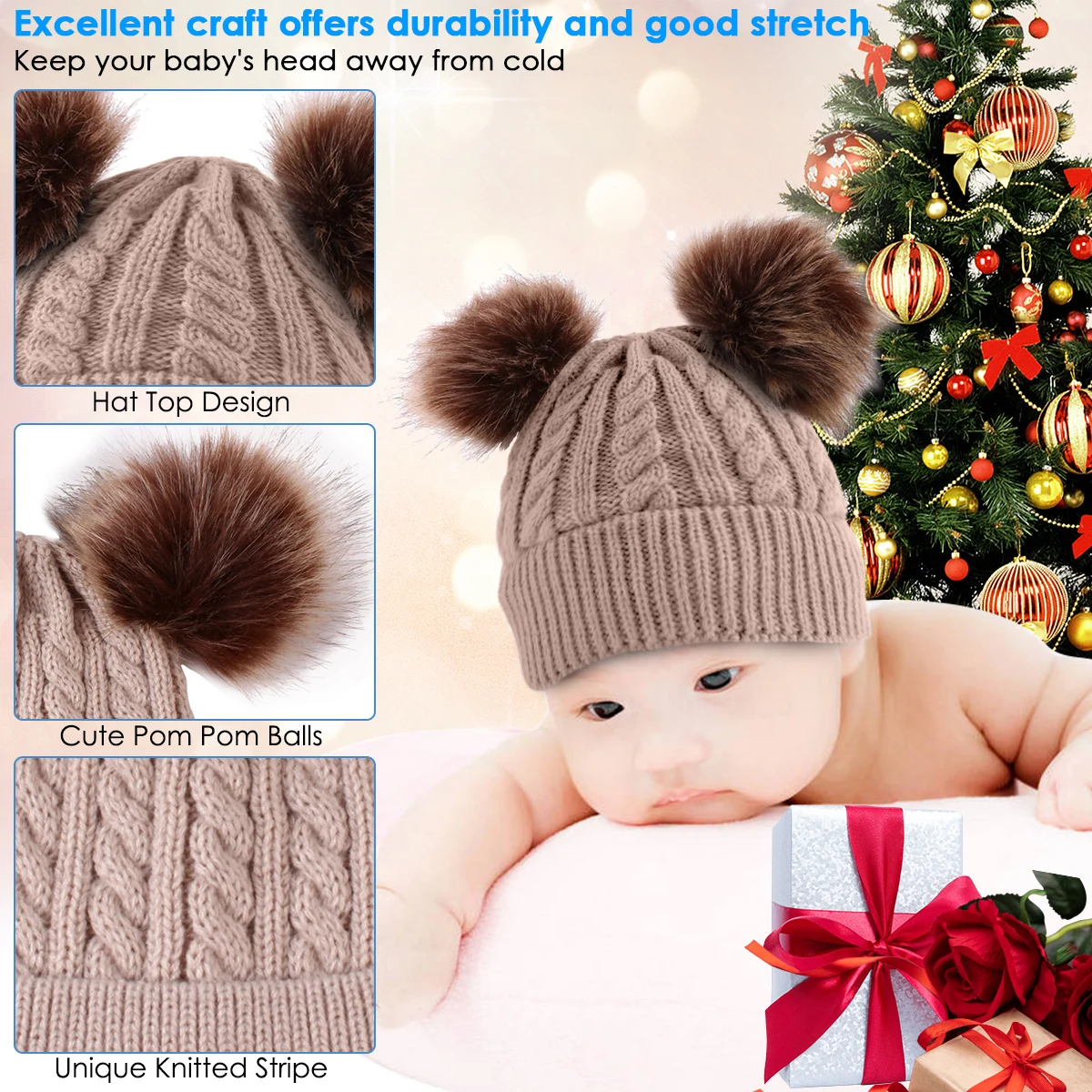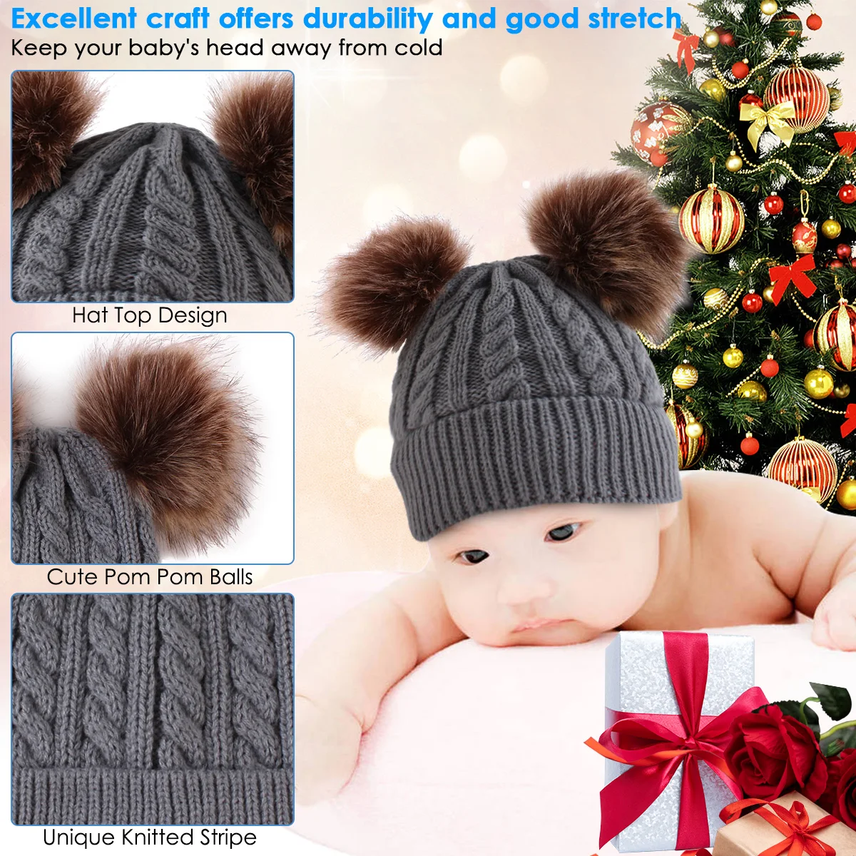 Puseky/детская шапка; Теплая Зимняя шерстяная шапка для малышей; Вязаная шапка с меховым помпоном; Шапка для маленьких мальчиков и девочек; От 0 до 3 лет; Прямая поставка
