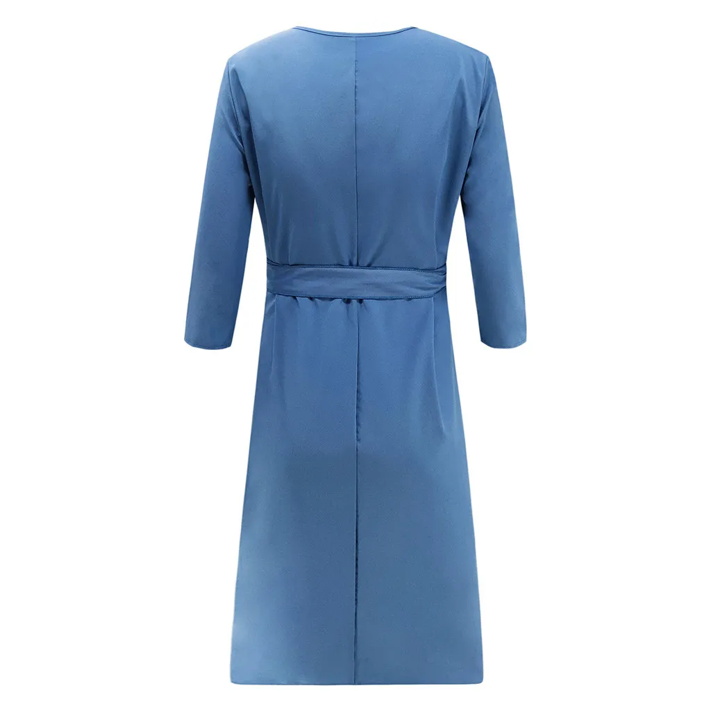 Женское сексуальное платье с v-образным вырезом, вечернее платье для вечеринки, женское пляжное летнее Бандажное платье с поясом, одежда с длинными рукавами