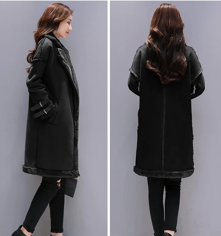 CACARE теплое модное длинное пальто, куртки для женщин, осенне-зимнее пальто, куртка F0102, замша, овечья шерсть, 2 варианта на выбор, с карманами