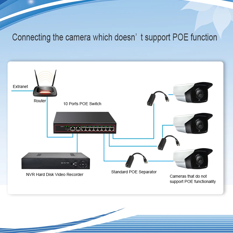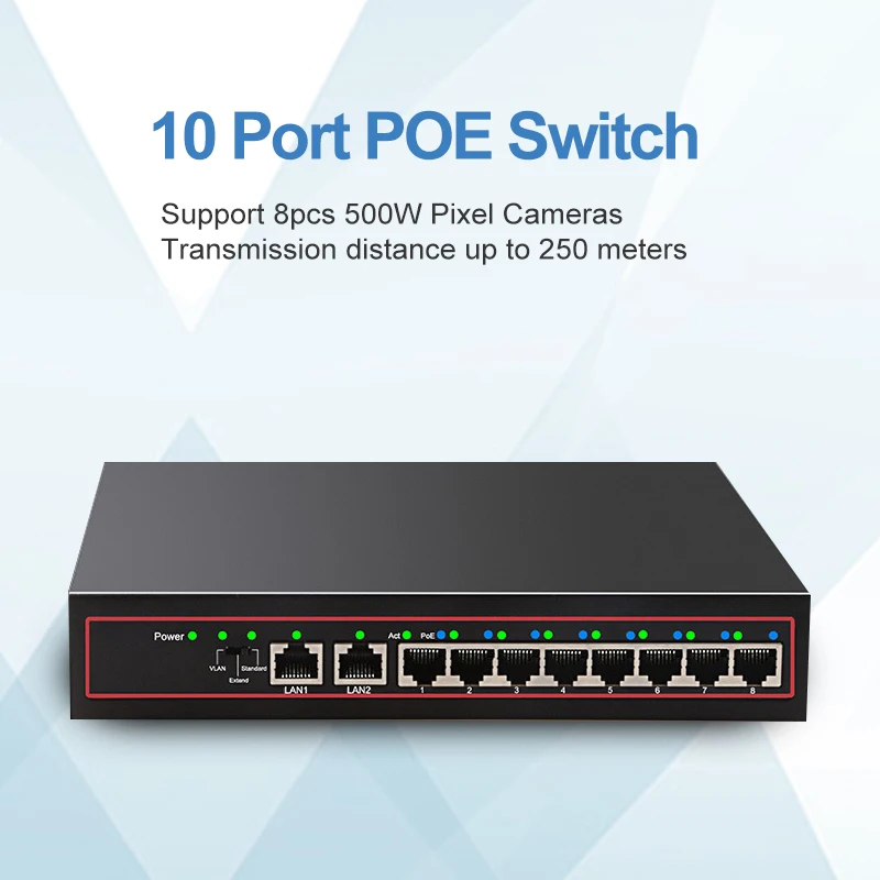 8 POE порт + 2Uplink 100 Мбит/с POE коммутатор TXE098 с внешним источником питания