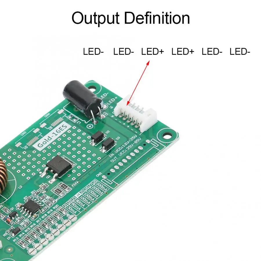 Этот продукт представляет собой постоянную пластина тока, фокус-постоянный ток, напряжение автоматически настраивается, а напряжение автоматически настраивается в соответствии со строкой модуля подсветки света, например: когда модуль подсветки 4 и 20 струн, Напряжение настраивается на проводную ленту 3,2 в * 20 = 64 в вокруг, предполагая, что каждая строка светодиодного тока составляет 60 мА, тогда нужно только установитьТок 240 мА указывает на этот экран.