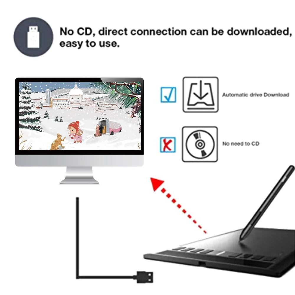 Большая Активная область позволяет высвободить ваше вдохновение на достаточном пространстве и стройной, гладкой, супер легкой панели с компактным дизайном и тонким мастерством, предлагает не задержки или не натирает отличный опыт рисования.