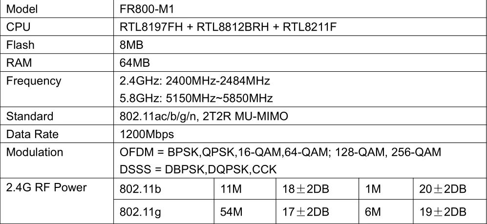 1. 11ac, MU-MIMO, двухдиапазонный, скорость передачи данных 1200 Мбит/с, гигабитный порт WAN Соответствует стандарту 802.11ac, диапазону 2,4G и 5G, скорости передачи данных 1200 Мбит/с гигабитным портом WAN, поддерживает технологию MU-MIMO Wave2.0, меньше помех Wi-Fi и высокая скорость передачи данных обеспечивают FR800 для обеспечения более стабильного и быстрого доступа к сети.
