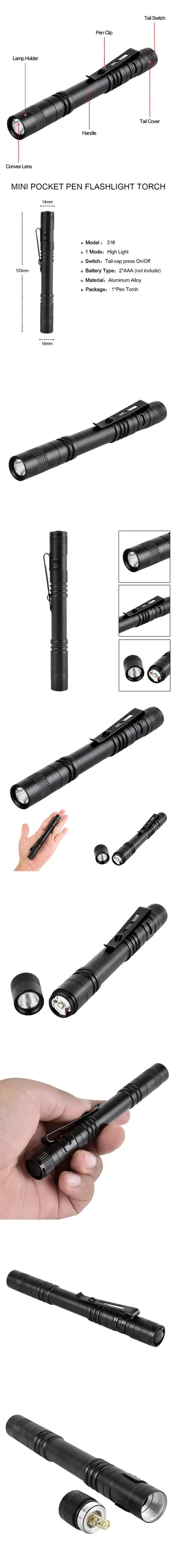 Q5 LEDФонарик,Портативный мини размер, форма как ручка, Зажим для легкой резьбы,1 режим переключения
