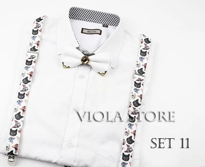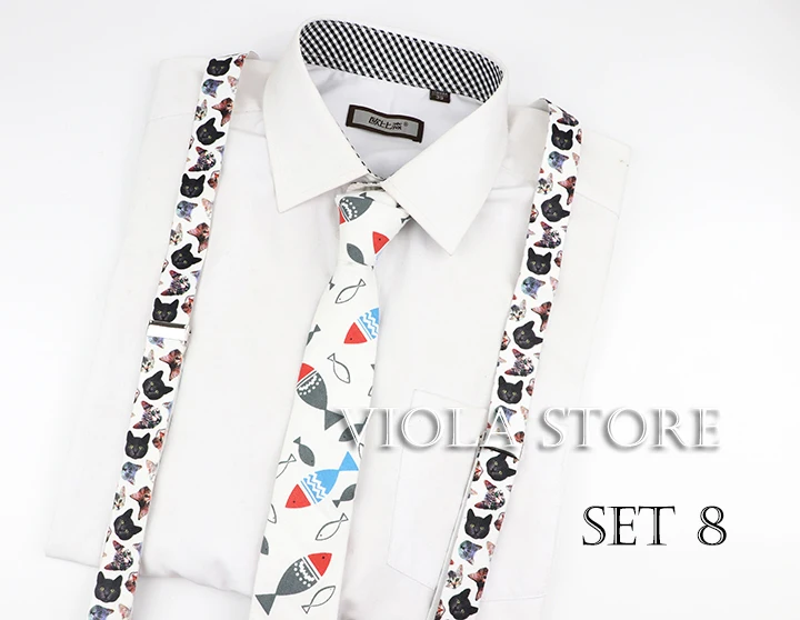 Милый Кот подтяжки галстук-бабочка с рисунком рыба набор