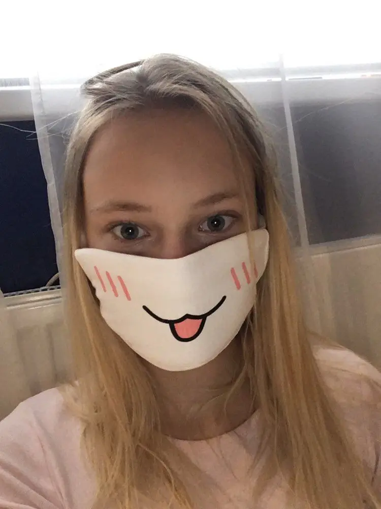 1 шт., белая женская забота о здоровье для девочек, милый аниме, Kaomoji-kun, смайлическая маска для рта, Kawaii, хлопковая противопыльная Зимняя Маска для лица Уважаемый покупатель показывает