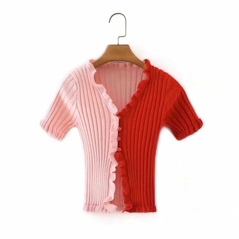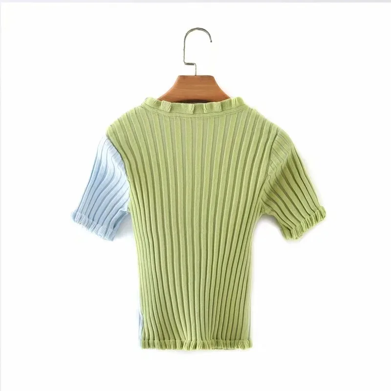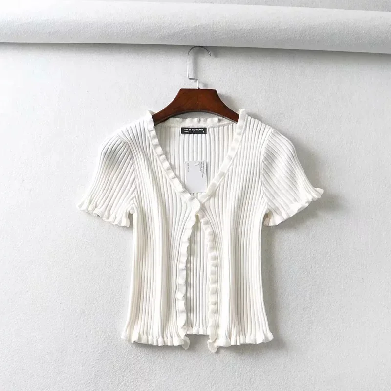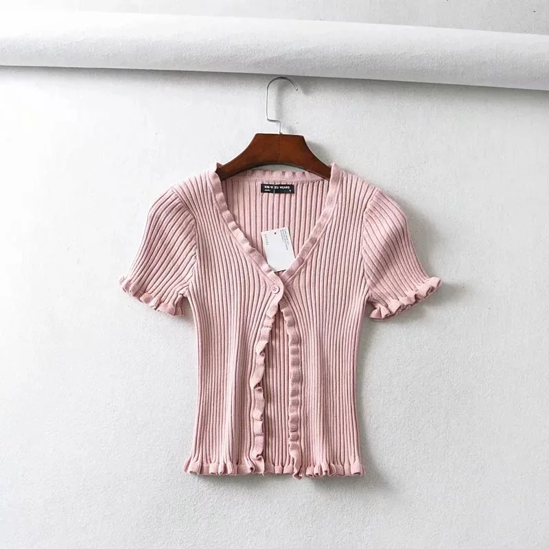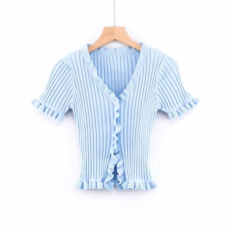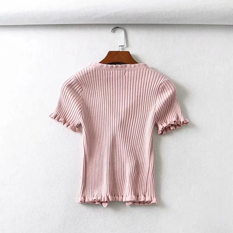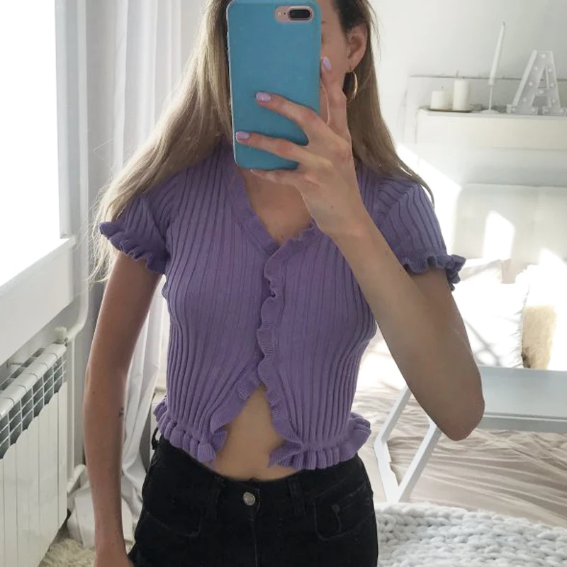 2018 Летняя женская трикотажная рубашка Harajuku короткий рукав с оборками укороченный топ сексуальная уличная одежда Femme короткий рукав забавная футболка