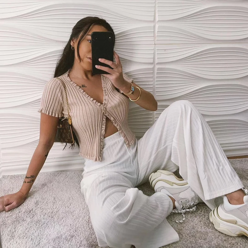 Бренд Харадзюку однотонный короткий женский летний сексуальный топ с v-образным вырезом на шнуровке с коротким рукавом модная уличная одежда для девочек в стиле хип-хопUSD 12,86/Шт.