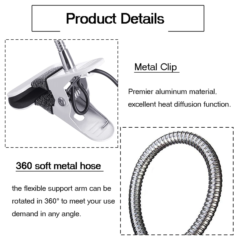 Это Косметическая лампа, предназначенная для осветительного эффекта тату, микроблейдинга, маникюра, мобильного ремонта и т. д. Он изготовлен из авиационного алюминиевого сплава и металла, который имеет хороший эффект диффузии тепла, хорошая прочность для длительного использования. Есть 2 гибких металлических шланга для удовлетворения ваших требований различных углов размещения. Он принял переключатель управления проводом, который имеет 4 кнопки для управления уровнем светильник и переключателем двух ламп. Яркий светильник, портативный размер, эта лампа с хорошей производительностью и удобным использованием.