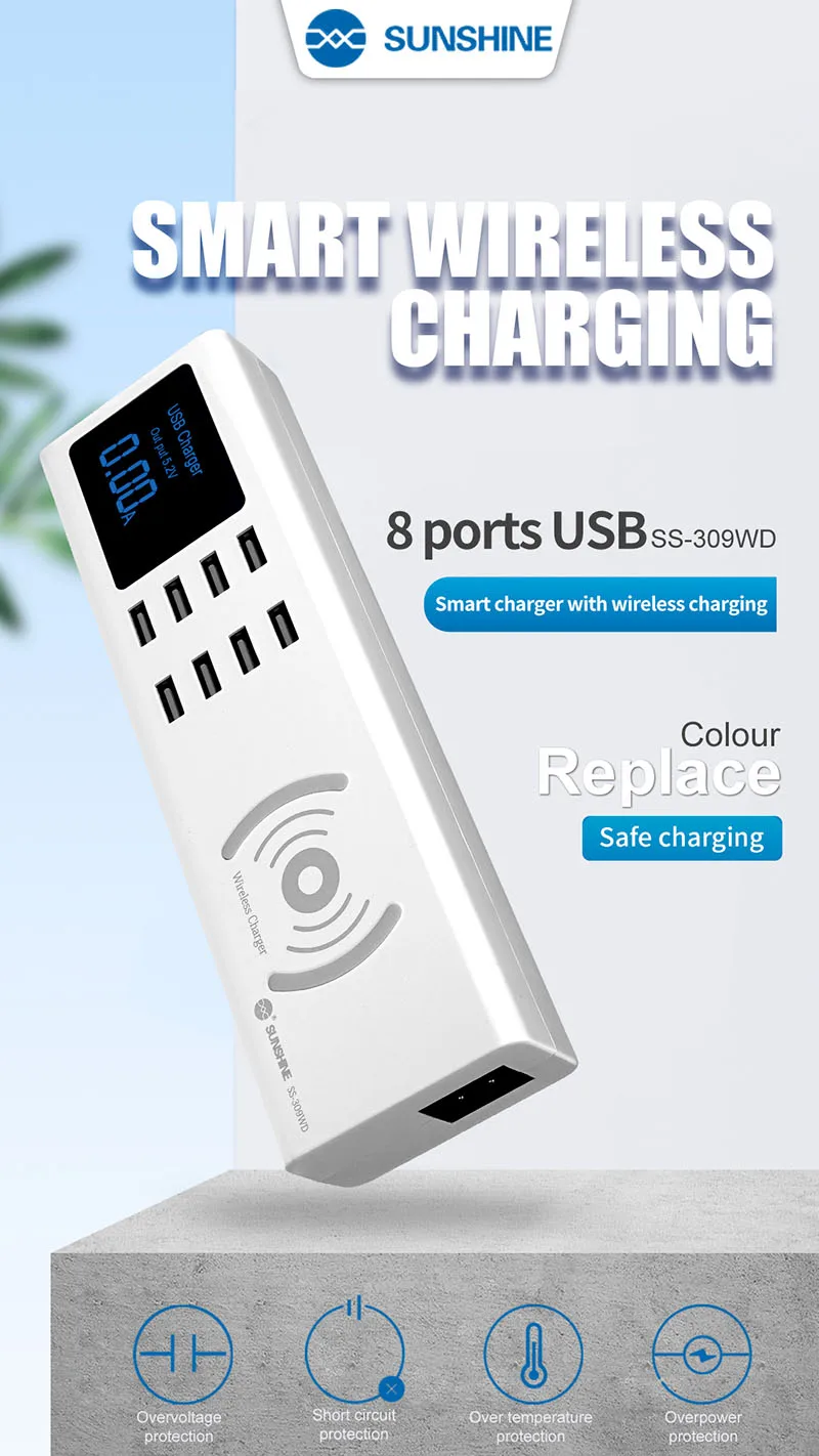 Солнечный SS-309WD светодиодный дисплей интеллектуальное Беспроводное зарядное устройство с 8 портами Смарт USB зарядное устройство для iPhone iPad Samsung Huawei Xiaomi