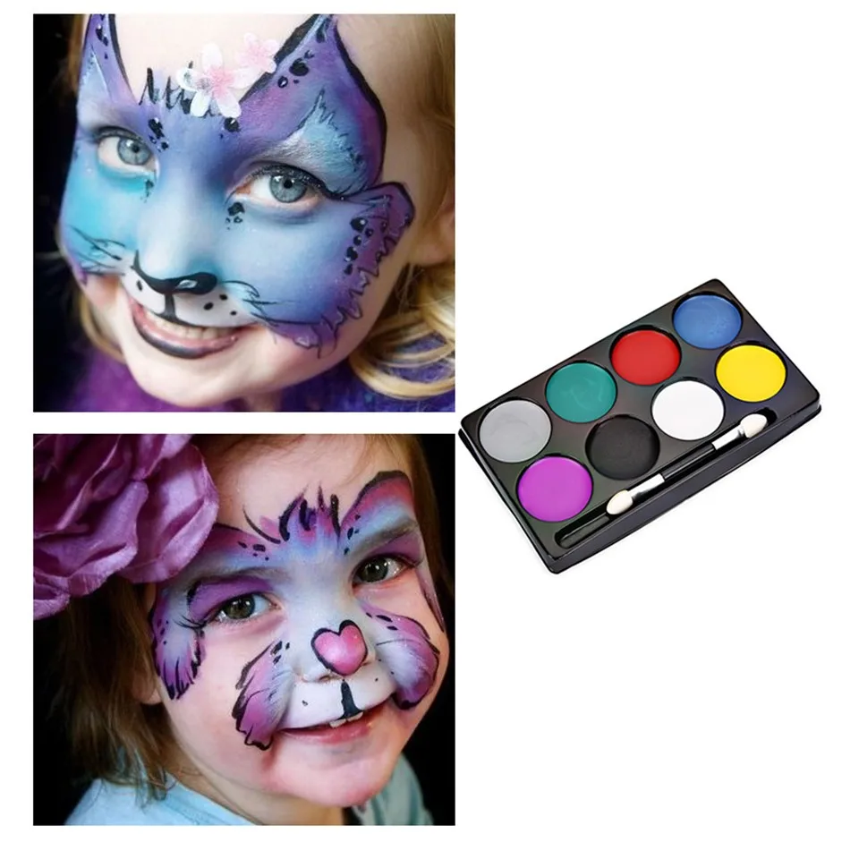 6/8 видов цветов краска для лица, макияж на Хэллоуин, Нетоксичная краска для воды, масло, Рождественская вечеринка, нарядное платье, фанаты дьявола, грунтовка для рисования лица