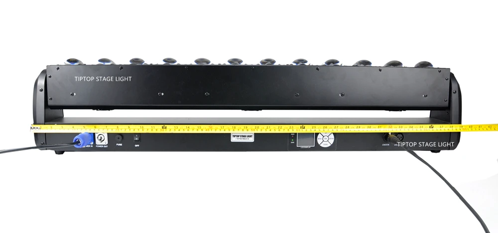 Напряжение: AC110-240V 50/60Hz Максимальная мощность: 370 Вт Источник светодиодов: 12 шт. 30 Вт RGBW 4в1 светодиод Цвет излучения: RGB + теплый белый Степень рассеивания света: 3 градуса Наклон: движение на 90 градусов Срок службы: 50000 часов Светодиод: контроль пикселей Стробоскоп: 20 раз в секунду Диммер: 0-100% Линейный диммер Канал: 13/53 Двухканальный режим Режим управления: DMX-512 контроль сигнала Самоходный режим, режим звукового управления Система охлаждения: система принудительного охлаждения вентилятора Рабочая среда: в помещении Вес нетто: 9,6 кг Размер приспособления: 101*21,5*10,5 см Стандартный упаковочный лист для каждого блока: 1 x светодиодный светильник с подвижной головкой 1 х Кабель питания 1 х кабель DMX 2 x крючок Руководство пользователя-1 шт.;