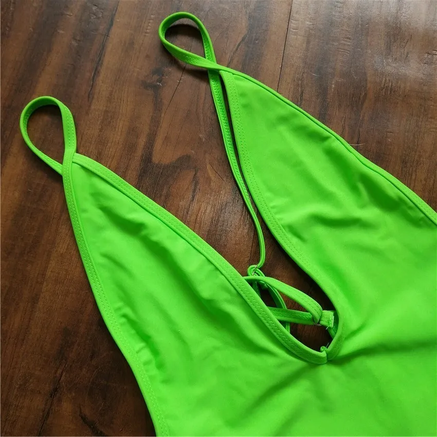 Неоновый купальник Одна деталь купальники Tanga женские 2019 купальный костюм женский с глубоким вырезом ванный комплект Plavky купальник монокини плавленого