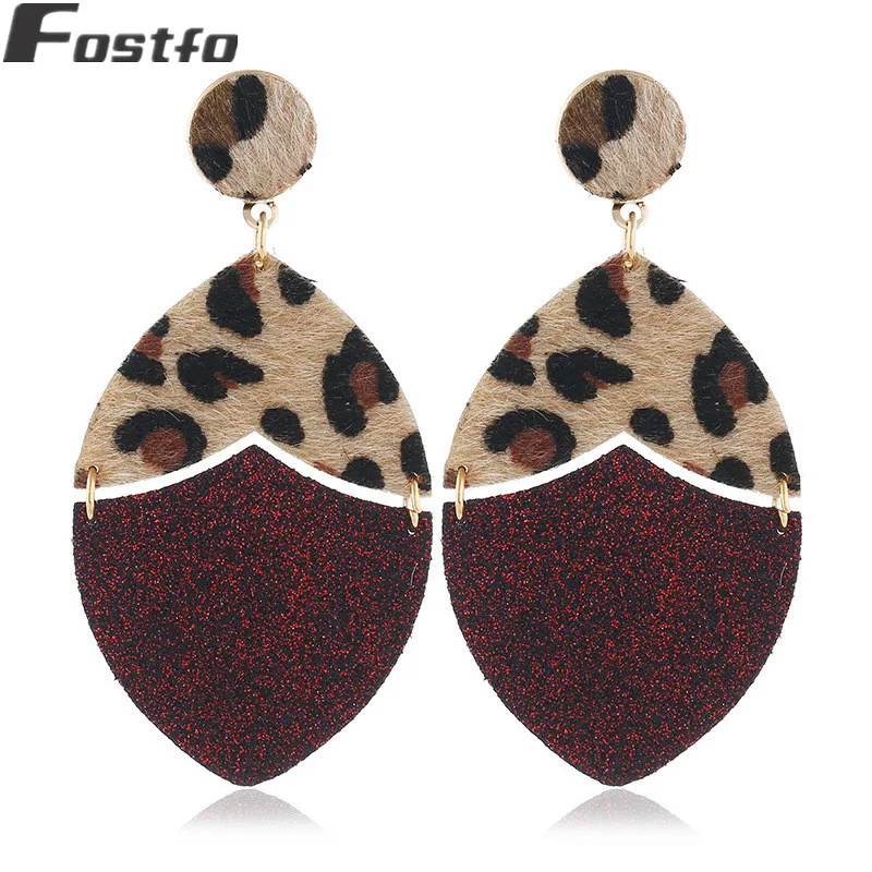 Fostfo женские серьги с леопардовым принтом винтажные кожаные серьги-капли в форме листьев Висячие серьги женские украшения для вечерние подарок 4 цвета