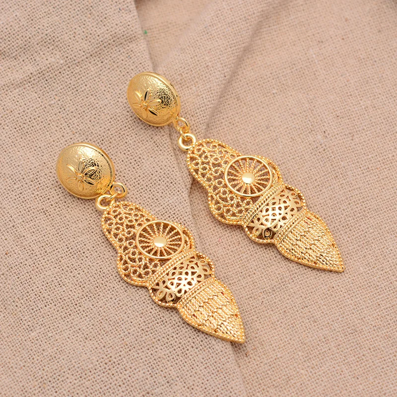 Цвет: цвет золотистый Процесс: золотое покрытие. Не настоящее золото или посеребренное покрытие Guality: 100% абсолютно новый/Высокое качество Стиль: модные аксессуары. Дизайн: Дубай золотые ювелирные изделия, свадебные украшения для невесты. Повод: помолвка/Юбилей/вечерние/подарок. Методы продаж: Розничная торговля, оптовая торговля, изготовление на заказ. Подходит для свадебных платьев, платьев и повседневной носки. Тщательный дизайн, с настоящим золотом, очень незабываемые подарки, ваш лучший выбор, это культура, постоянная дружба, любовь на самом деле нуждается в ювелирном изделии, вы можете отправить свою маму, любовника, друга, потому что они запомнят вас