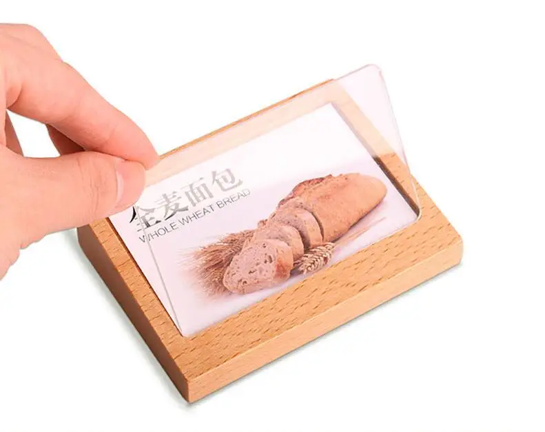 Настольный держатель для меню, ценник, подставка для дисплея, прозрачный деревянный акриловый держатель для этикеток, рекламная фоторамка, плоская деревянная рамка, держатель знака