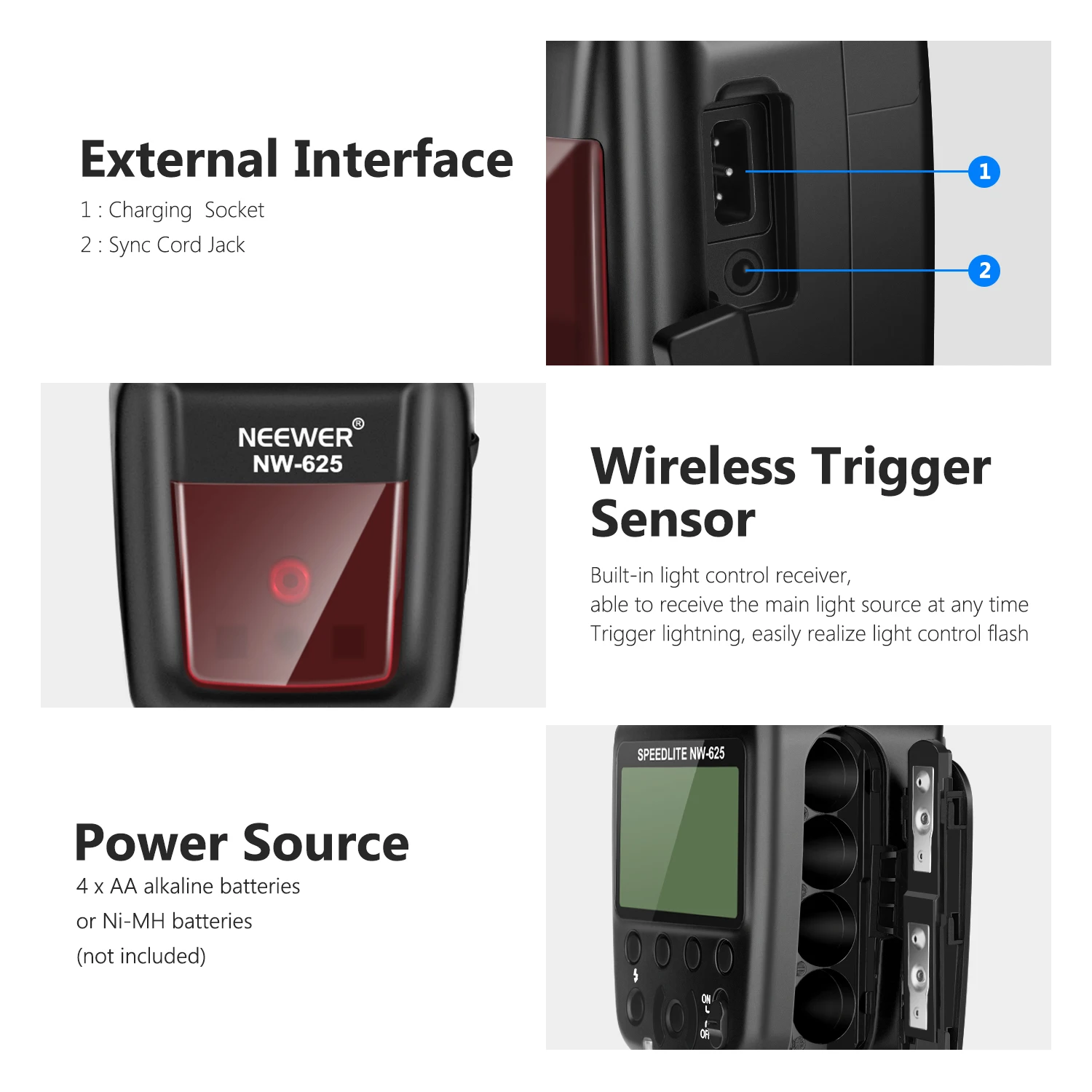 Вспышка Neewer NW625 GN54 Speedlite для Canon Nikon Panasonic Olympus Pentax Fijifilm DSLRs и беззеркальных камер и Sony с Mi Hot Shoe like a9 a7 a7II a7III a7RII a7SII a6000 a6300 a6500