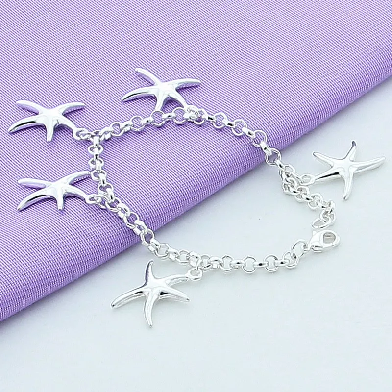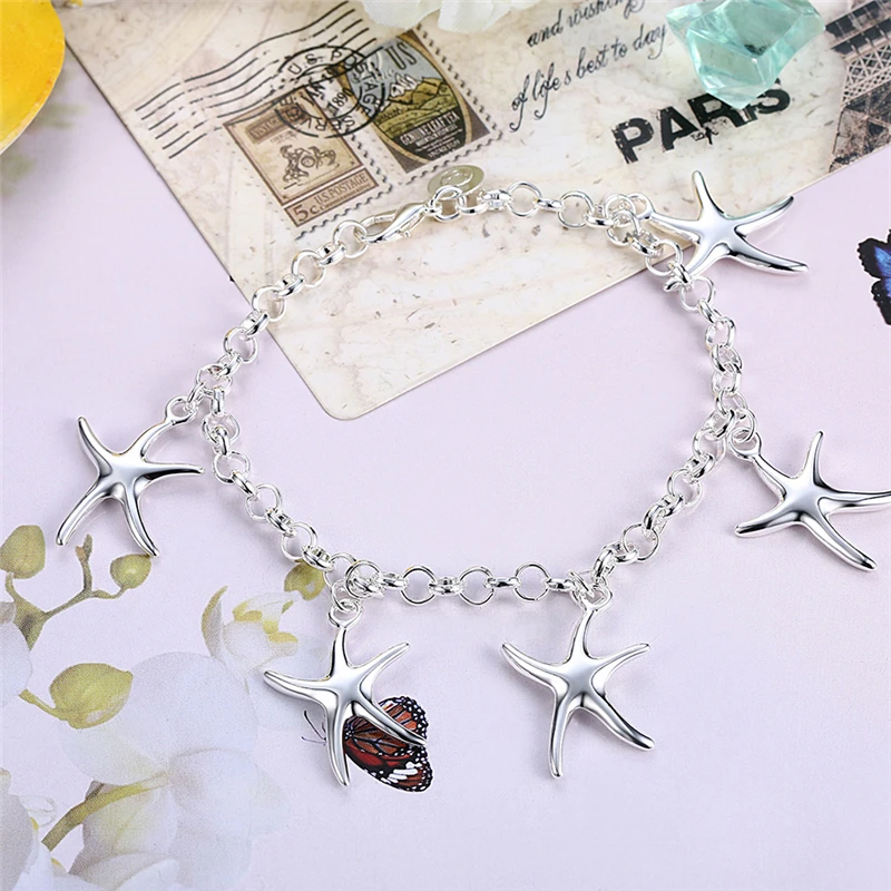 Женский браслет DOTEFFIL, из стерлингового серебра 925 пробы с подвеской в виде пятиконечной звезды, свадебные вечерние ювелирные изделия
