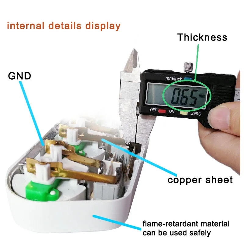 Материал корпуса ABS огнестойкий материал. Внутренний медный контакт. Стабильность напряжения. Управление одним переключателем более удобное в использовании. Энергосбережение.