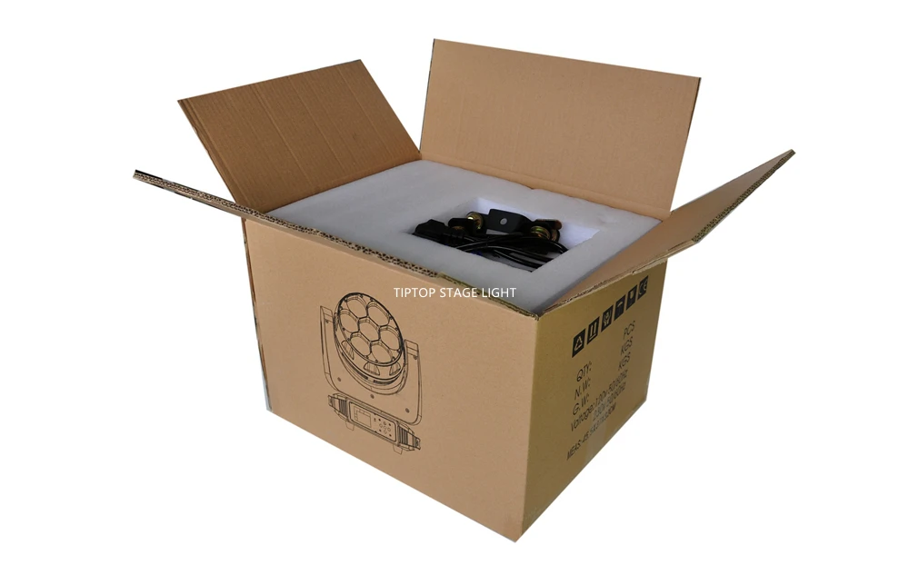 Входная мощность: AC100-240V 50/60 Гц Потребляемая мощность: 320 Вт Светодиодный: 7 шт. 40 Вт высокой мощности RGBW светодиодный Бренд светодиодной лампы: OSXXX (из-за копирования, мы не можем написать полное имя) DMX канал: 12CH/17CH Панорамирование/наклон: ось X 540 градусов, ось Y 190 градусов Режим управления: DMX512/Master-Slave/Auto run Доступна Стробоскопическая Макросъемка Зум: Электронный зум Дисплей: ЖК-дисплей Уровень IP: IP20 Информация об упаковке картонной коробки: Вес нетто: 9,2 кг Вес брутто: 11 кг Размер упаковки: 45,5*37*32 см Упаковочный лист для каждого блока: 1 х светодиодный светильник с подвижной головкой 1 х Кабель питания 1 x Кабель DMX 2 x зажимы 1 Руководство пользователя