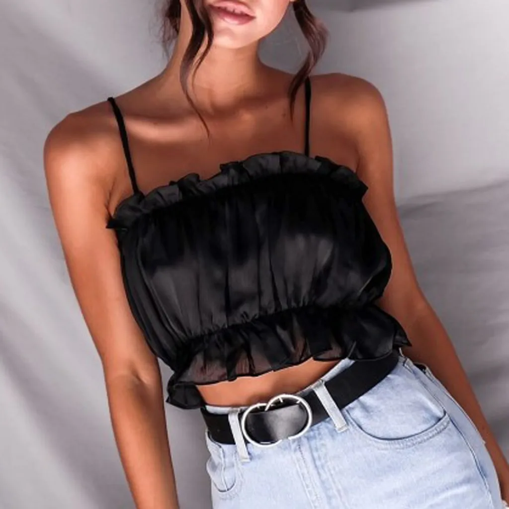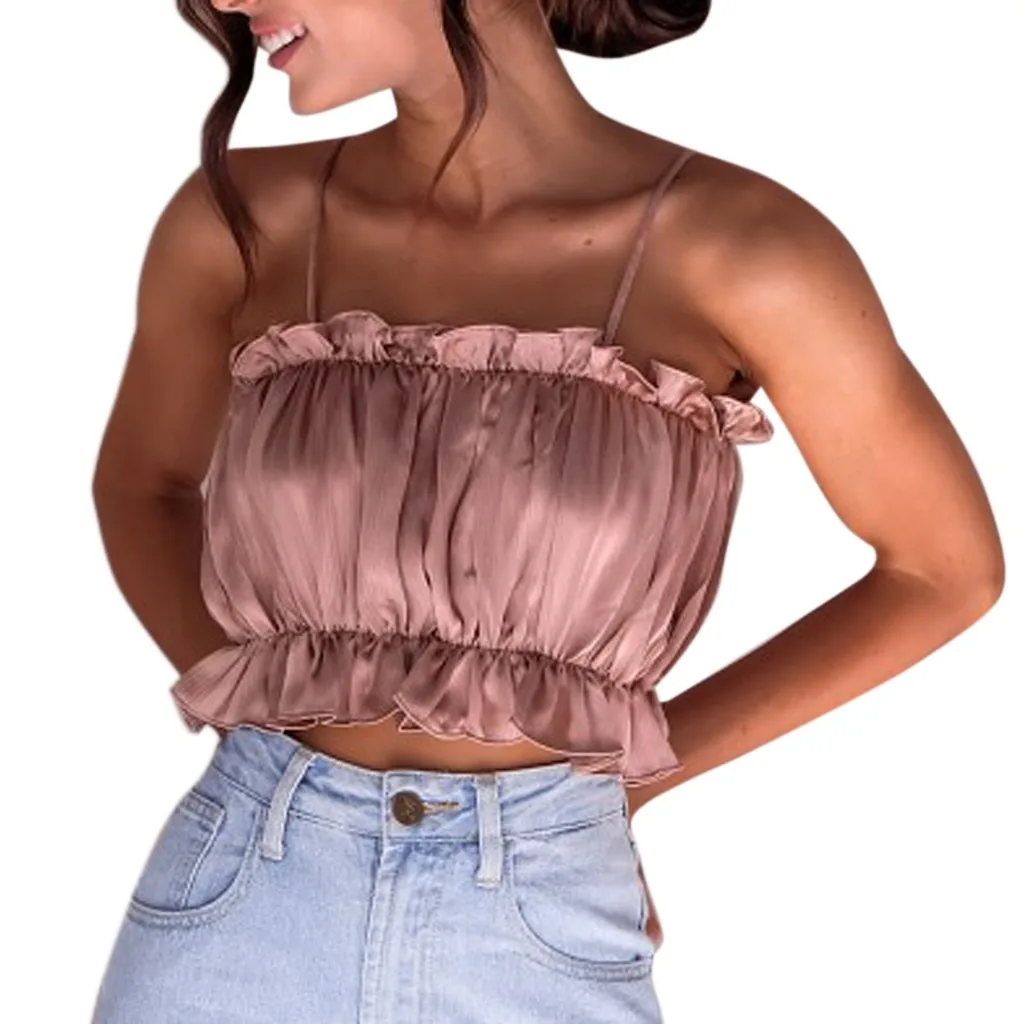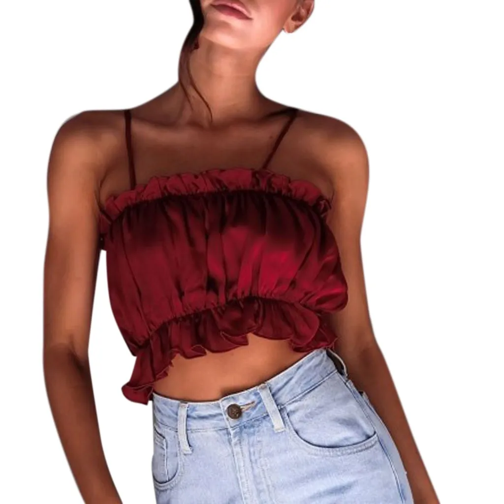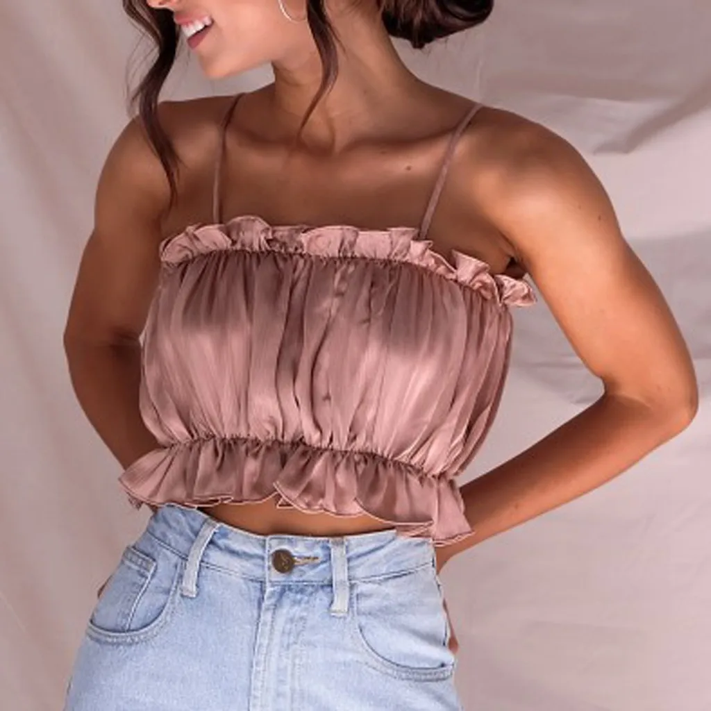 Сексуальные женские модные женские повседневные однотонные складные базовые однотонные Топы на бретельках