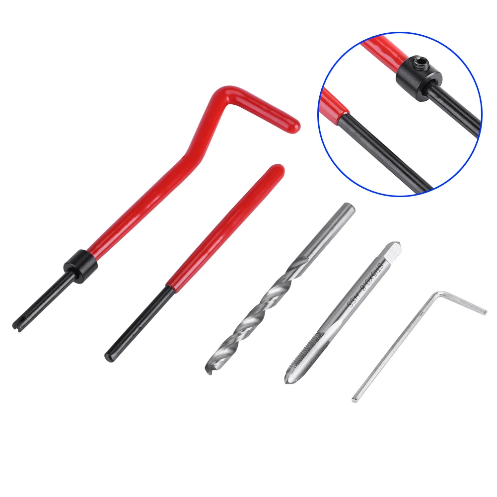 30 шт. Набор для ремонта резьбы, включая 25 вставок проволочной резьбы. Идеально подходит для восстановления поврежденных нитей, подходит для ремонта двигателя и других автомобилей. Применение для стали, чугуна и алюминия.